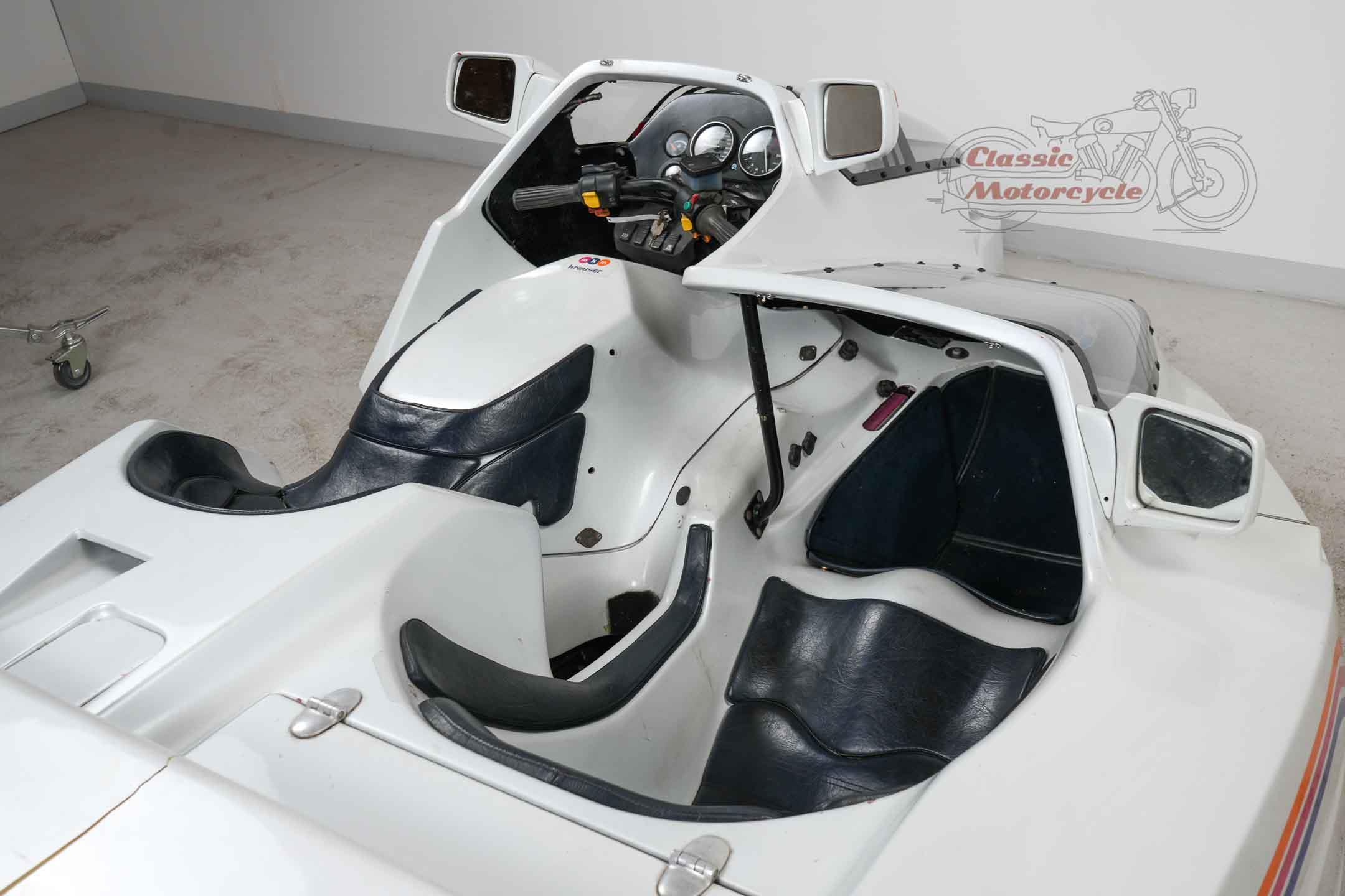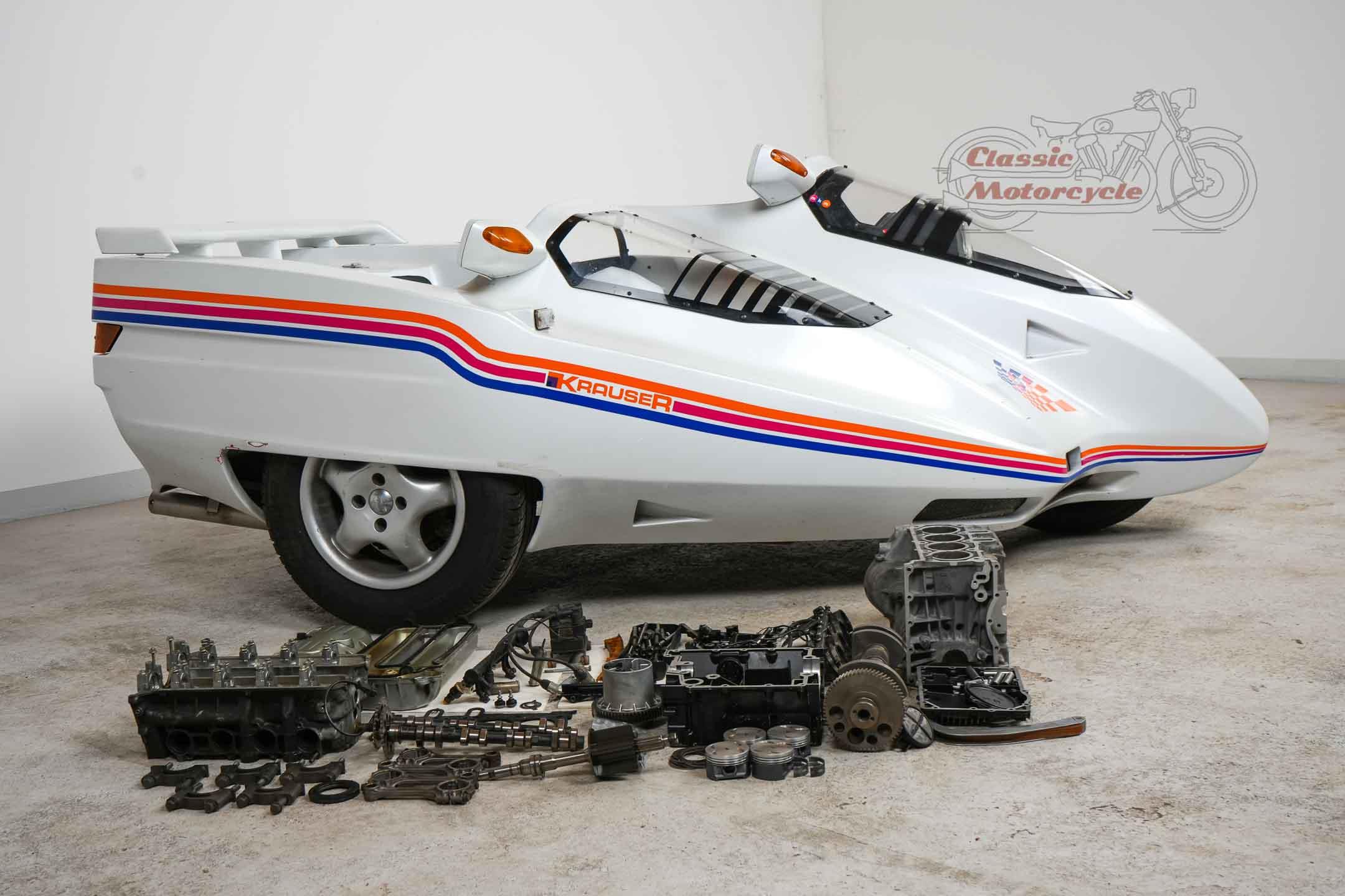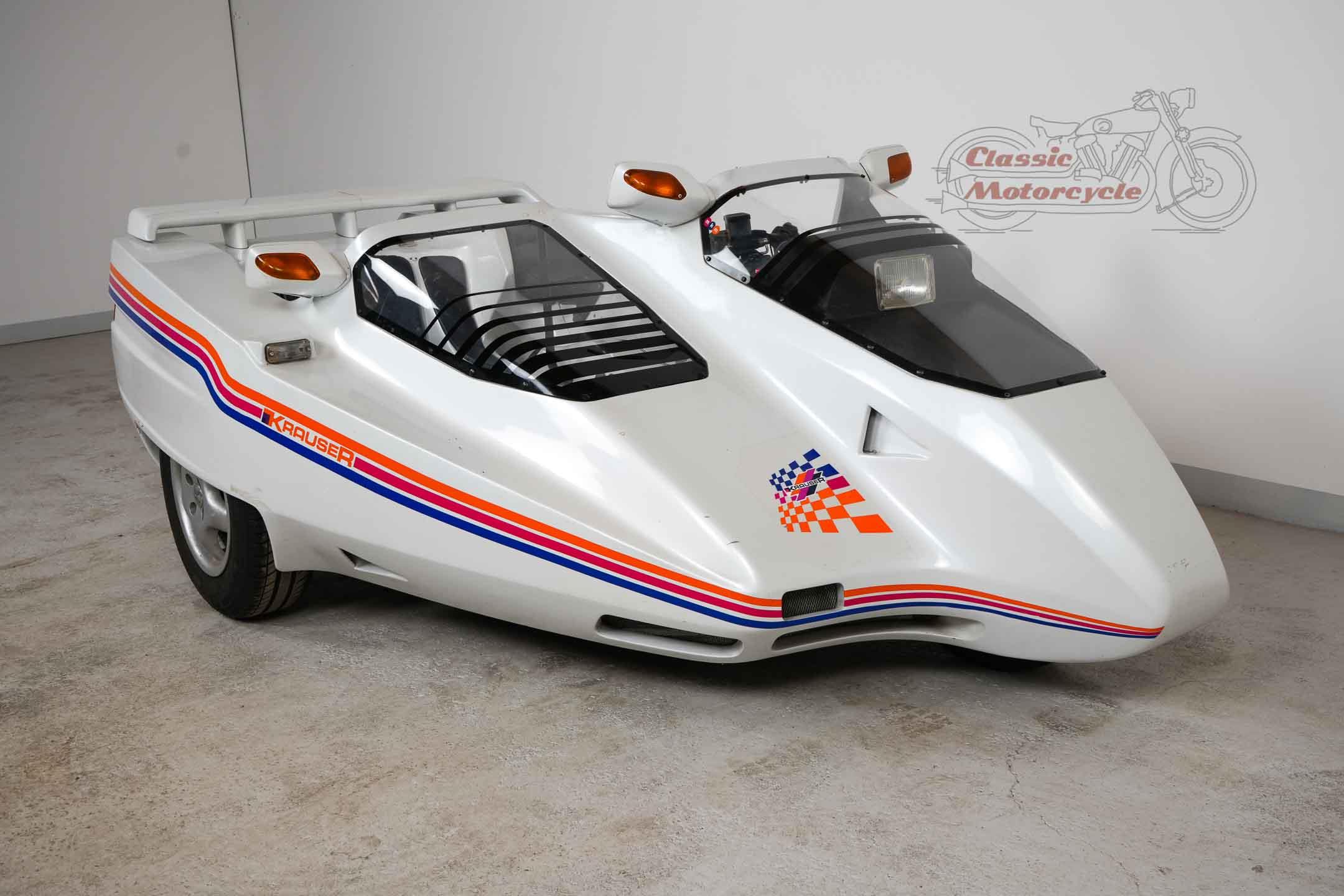 We offer a rare Krauser Domani combination. The Domini was produced from 1988 to 2004 and was ahead of its time. The highlight is the wheel hub steering and the pipe frame carrier. The story starts in Germany on September 21, 1999 where the machine was first registered. A few years later she came to France, Primelin in a collection. In 2016, the combination was acquired by a private collector from Germany, where it was part of the collection until the end. The machine runs with start-up aid, it needs technical attention. All registration numbers and previous owners are known. Another Domini engine is currently installed. The original engine is dismantled and lies in the pictures next to the machine. This has already been partially overhaul and is included in the offer. There are many documents: operating instructions including service history, certificates from France, original sales catalog, invoice for engine overhaul, papers from Germany. Only about 130 pieces were made.
