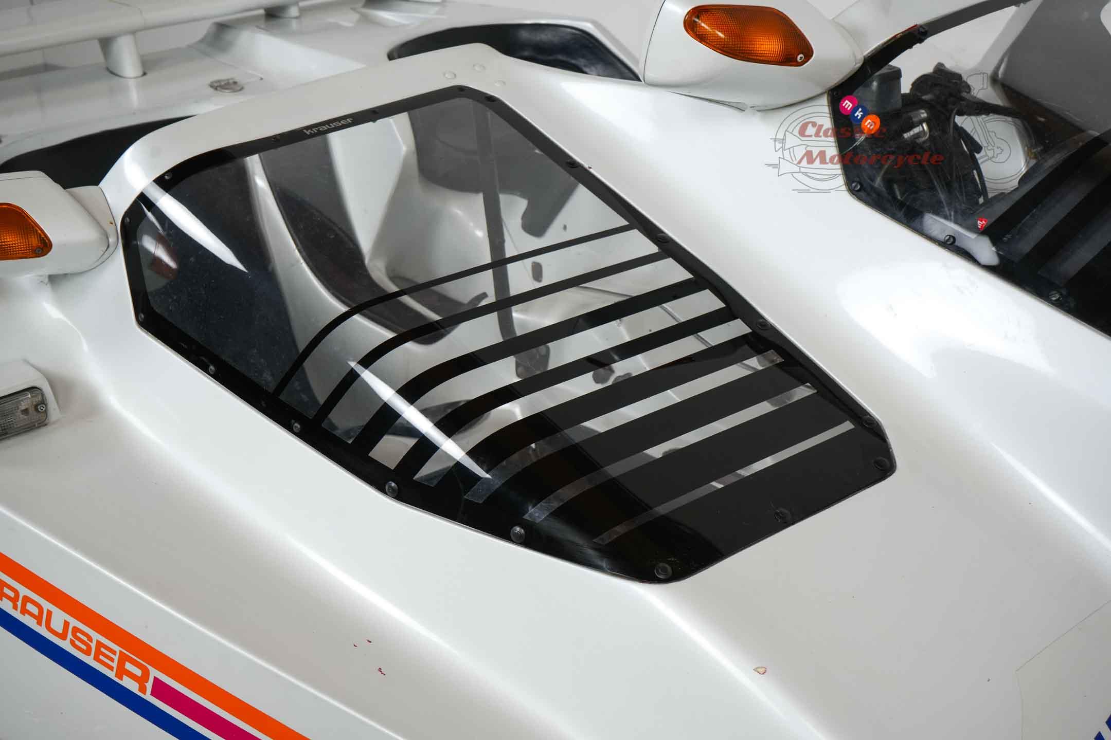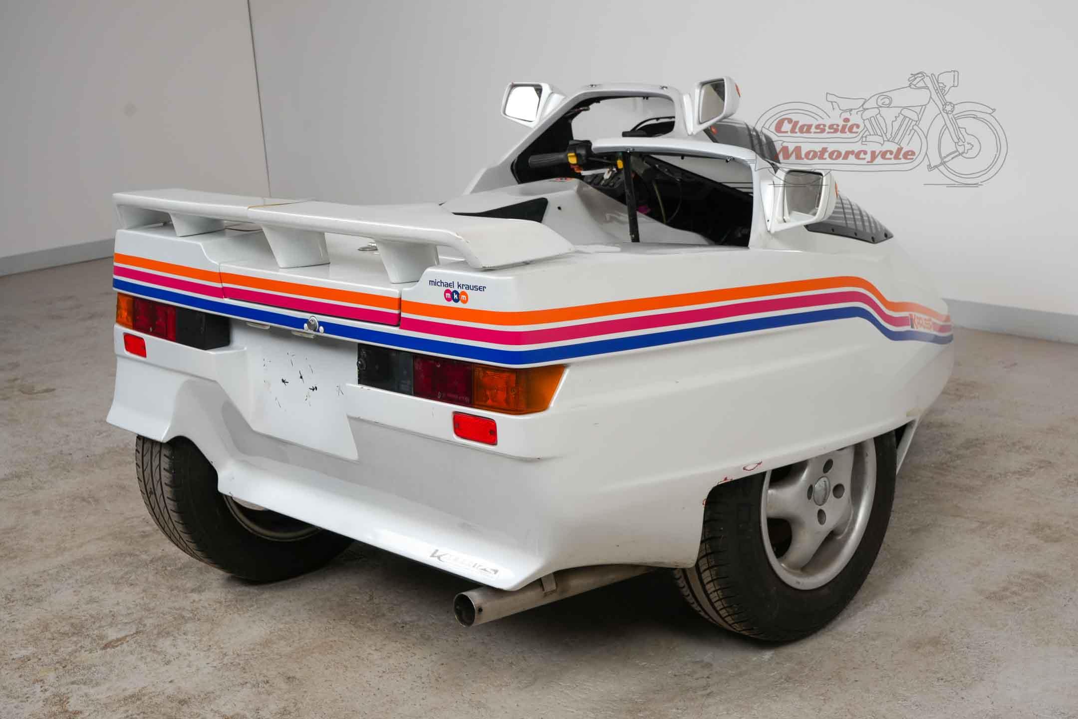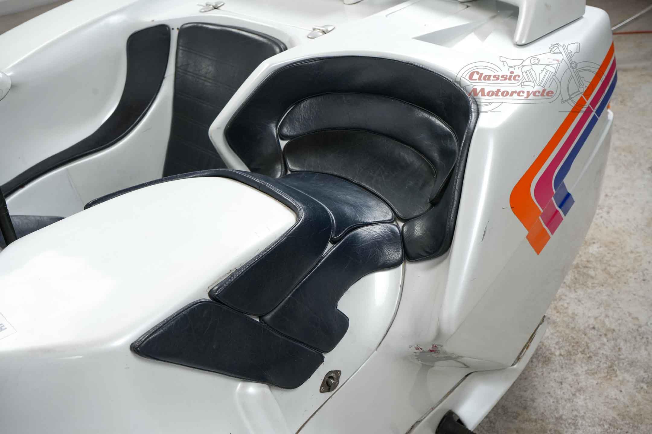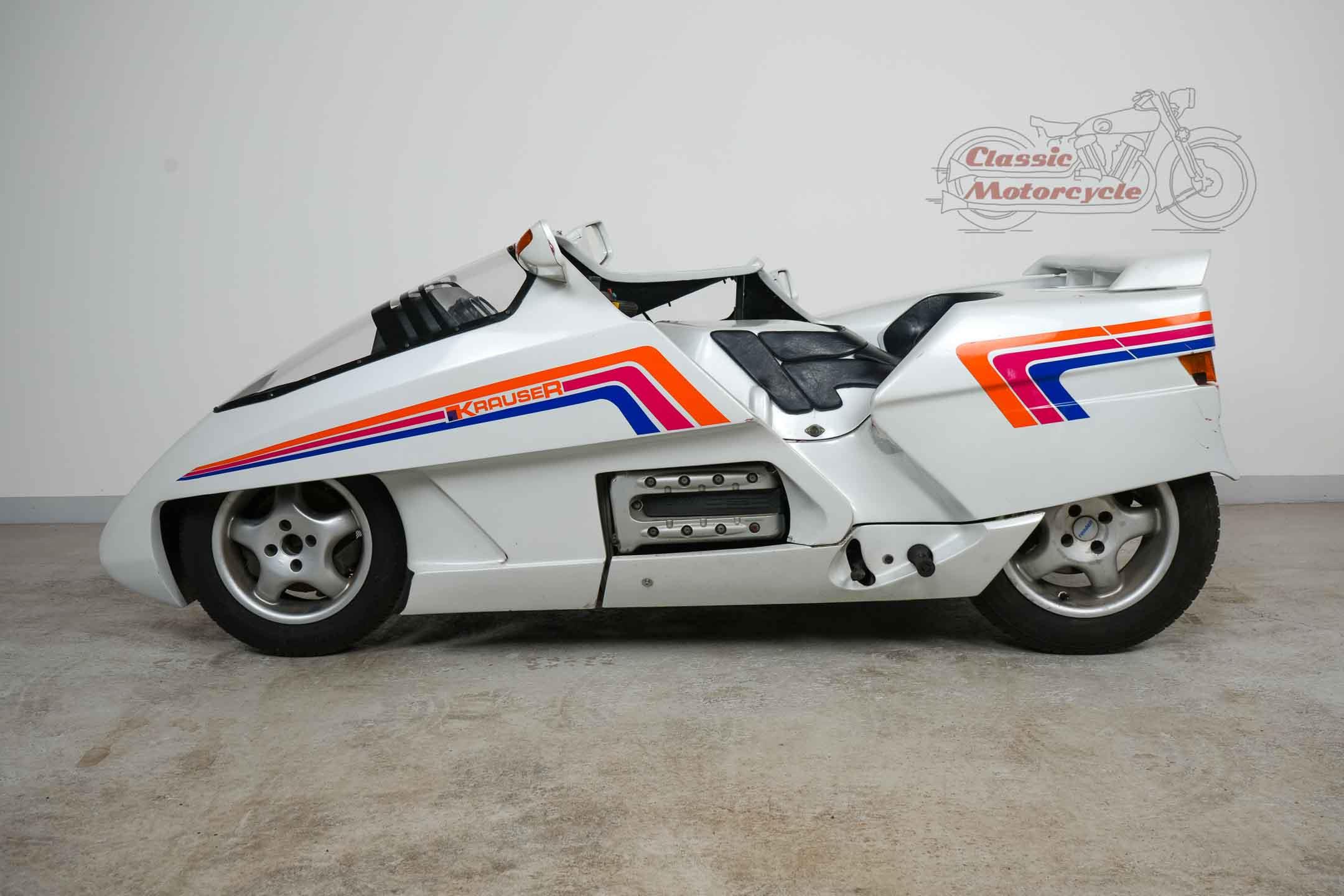 We offer a rare Krauser Domani combination. The Domini was produced from 1988 to 2004 and was ahead of its time. The highlight is the wheel hub steering and the pipe frame carrier. The story starts in Germany on September 21, 1999 where the machine was first registered. A few years later she came to France, Primelin in a collection. In 2016, the combination was acquired by a private collector from Germany, where it was part of the collection until the end. The machine runs with start-up aid, it needs technical attention. All registration numbers and previous owners are known. Another Domini engine is currently installed. The original engine is dismantled and lies in the pictures next to the machine. This has already been partially overhaul and is included in the offer. There are many documents: operating instructions including service history, certificates from France, original sales catalog, invoice for engine overhaul, papers from Germany. Only about 130 pieces were made.