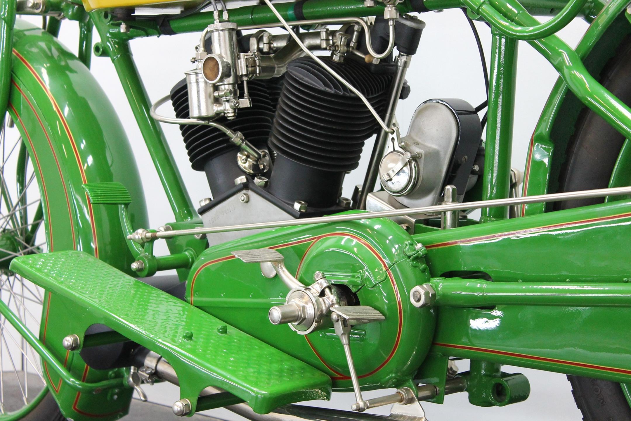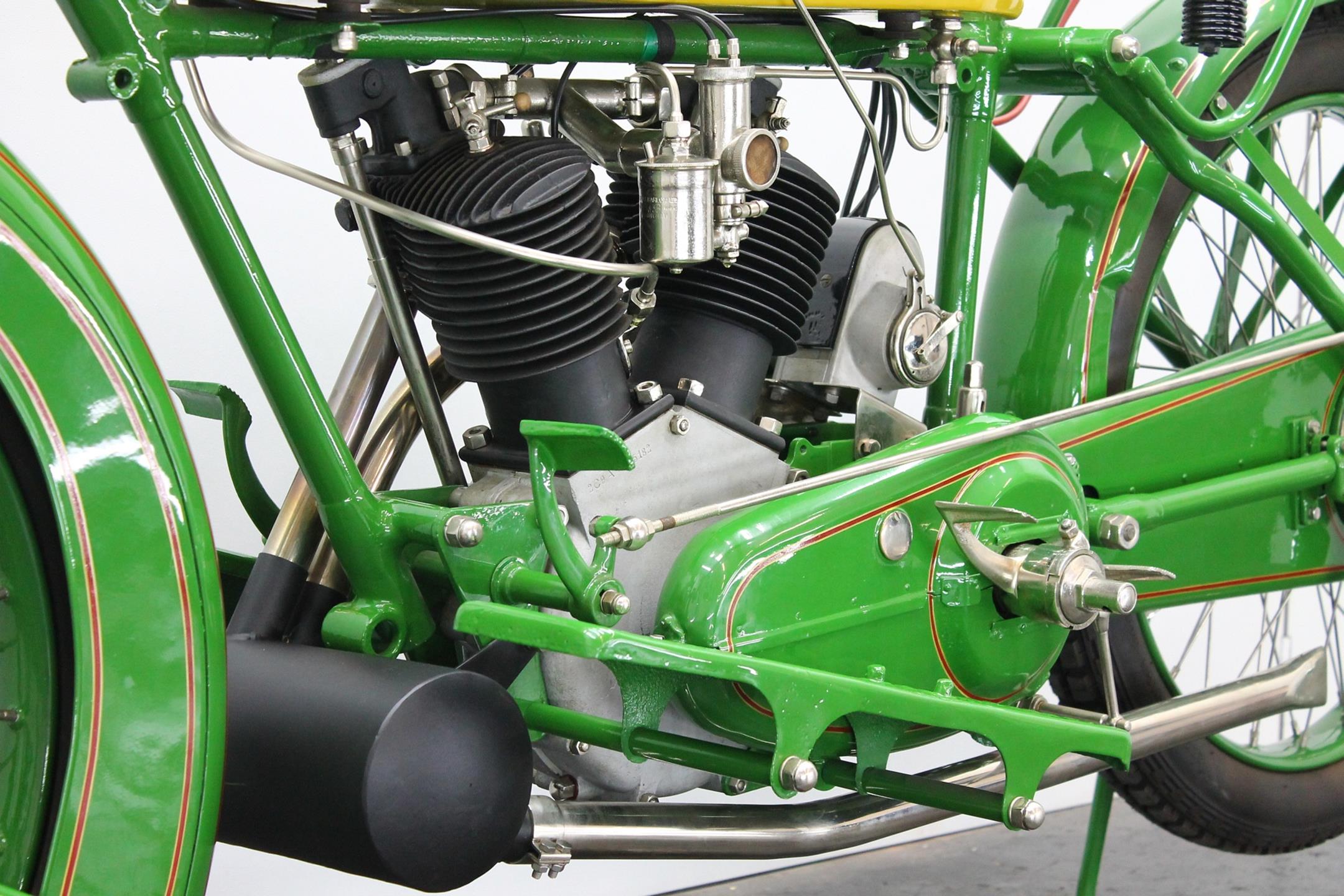 This rare Model J with MAG engine is equipped with a Lucas acetylene lighting set, Brown and Barlow carburetor, toolbox, hand operated horn, foot controlled clutch, three-speed countershaft gearbox (cylindrical gearbox is of Matchless’ own design), automatic exhaust valve lifter, coupled to the kick start mechanism and primary transmission by Coventry silent chain. It´s has been restored with many of love to highest standard.