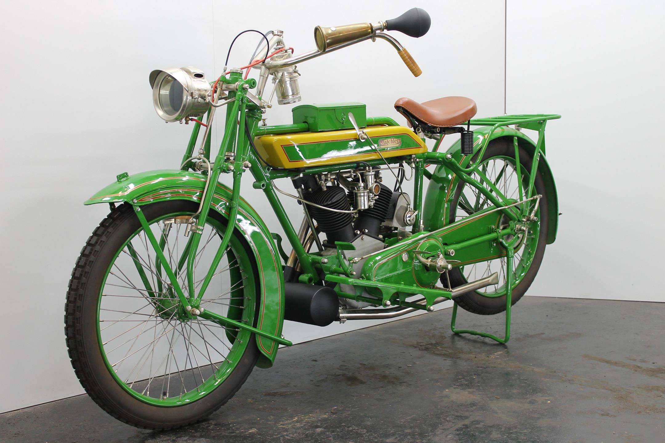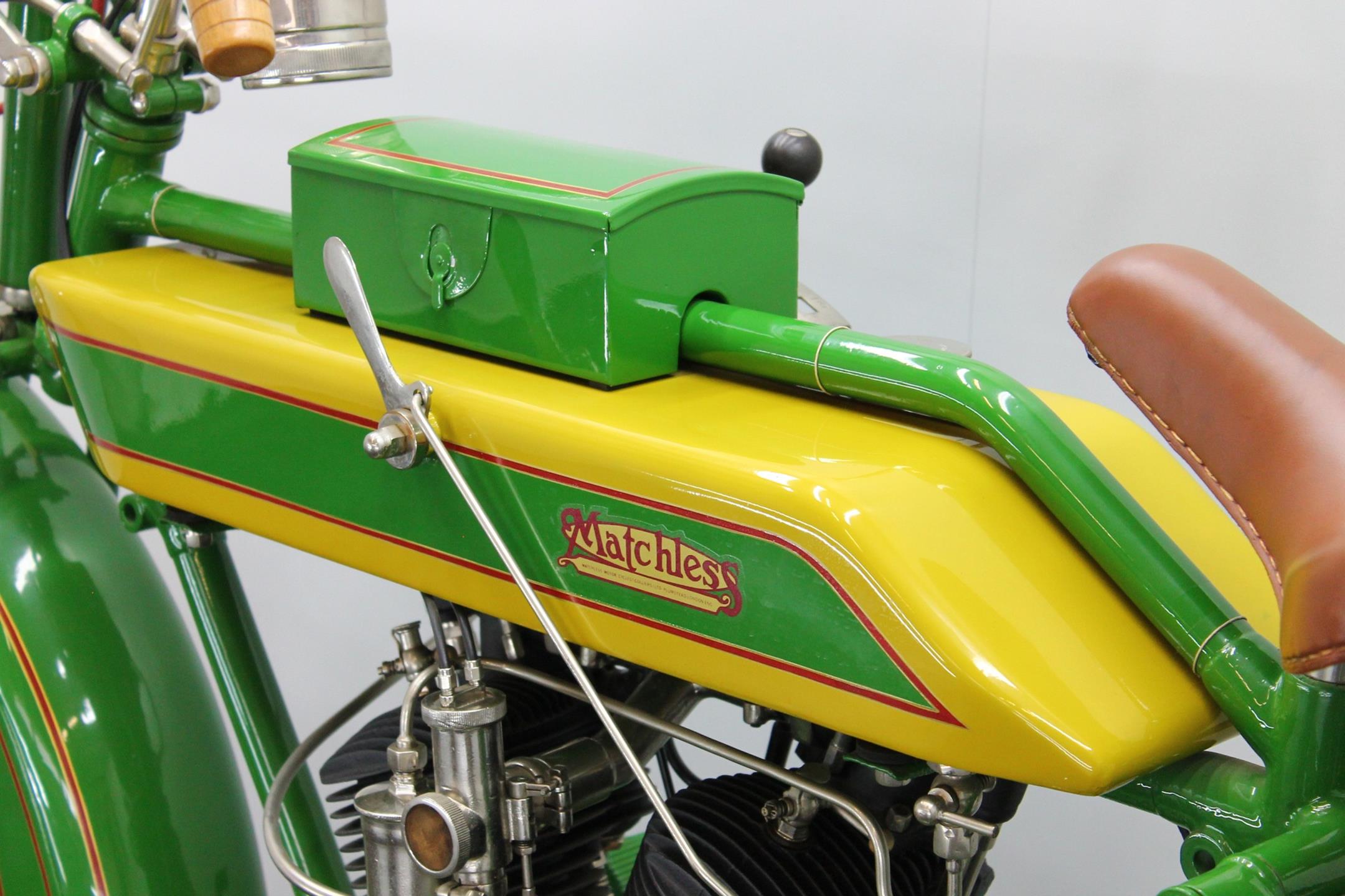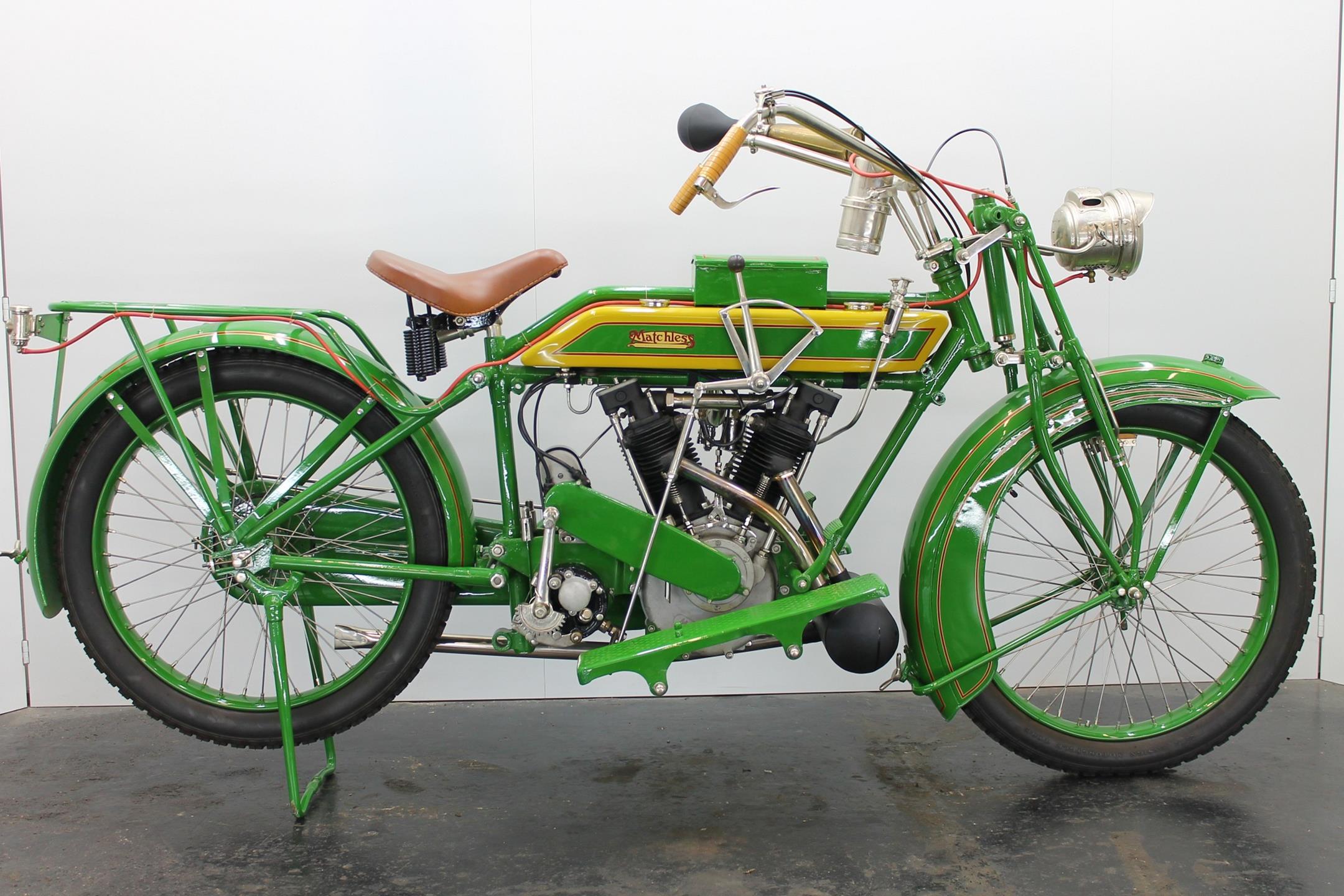The first Matchless motorcycle was made in 1899, and production began in 1901. Matchless was the trading name of Collier & Sons, the father Henry Herbert Collier and his sons Charlie and Harry. The Matchless tank badge was a winged "M". Like many motorcycle manufacturers of the time, they had started as bicycle manufacturers. They produced a JAP V-twin powered bike in 1905, with one of the earliest swing-arm rear suspensions, coupled with leading-link front forks. Charlie won the inaugural TT singles race in 1907 at an average speed of 38.21 mph in a time of 4 hours 8 minutes 8 seconds. Harry did not finish in 1907, but won in 1909, and Charlie won again in 1910, bringing Matchless motorcycles to the attention of the public. Matchless made mostly singles, but they also made V-twins from 496 cc to 998 cc. They made their own engines from 1912 on. Matchless was not given a contract to make motorcycles for the army during the First World War. Peacetime production resumed in 1919, concentrating at first on V-twins for sidecar use, leaving singles until 1923. In 1926 Henry Collier died, and by 1928 Matchless was a limited company. Matchless engine suppliers were MAG and JAP.