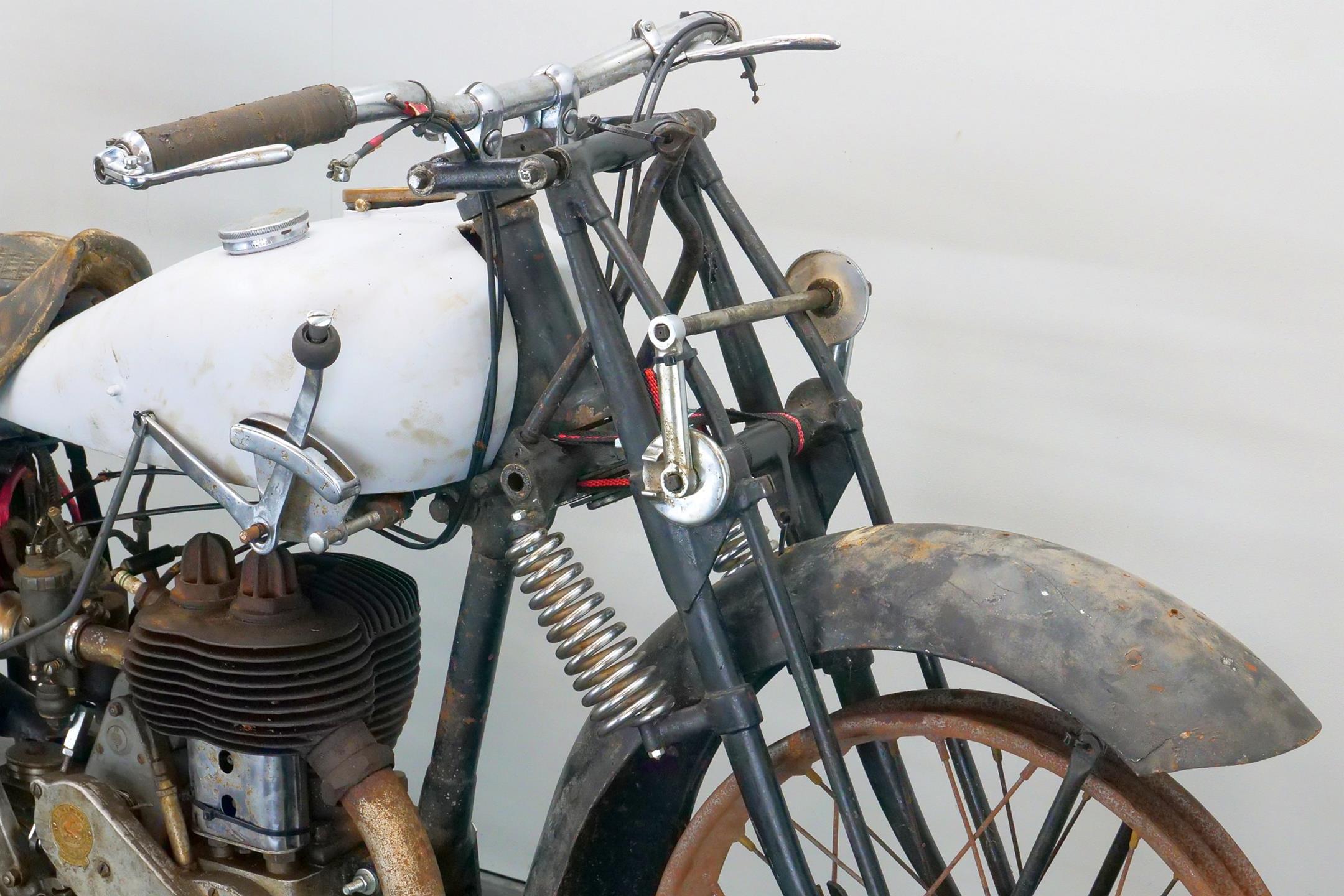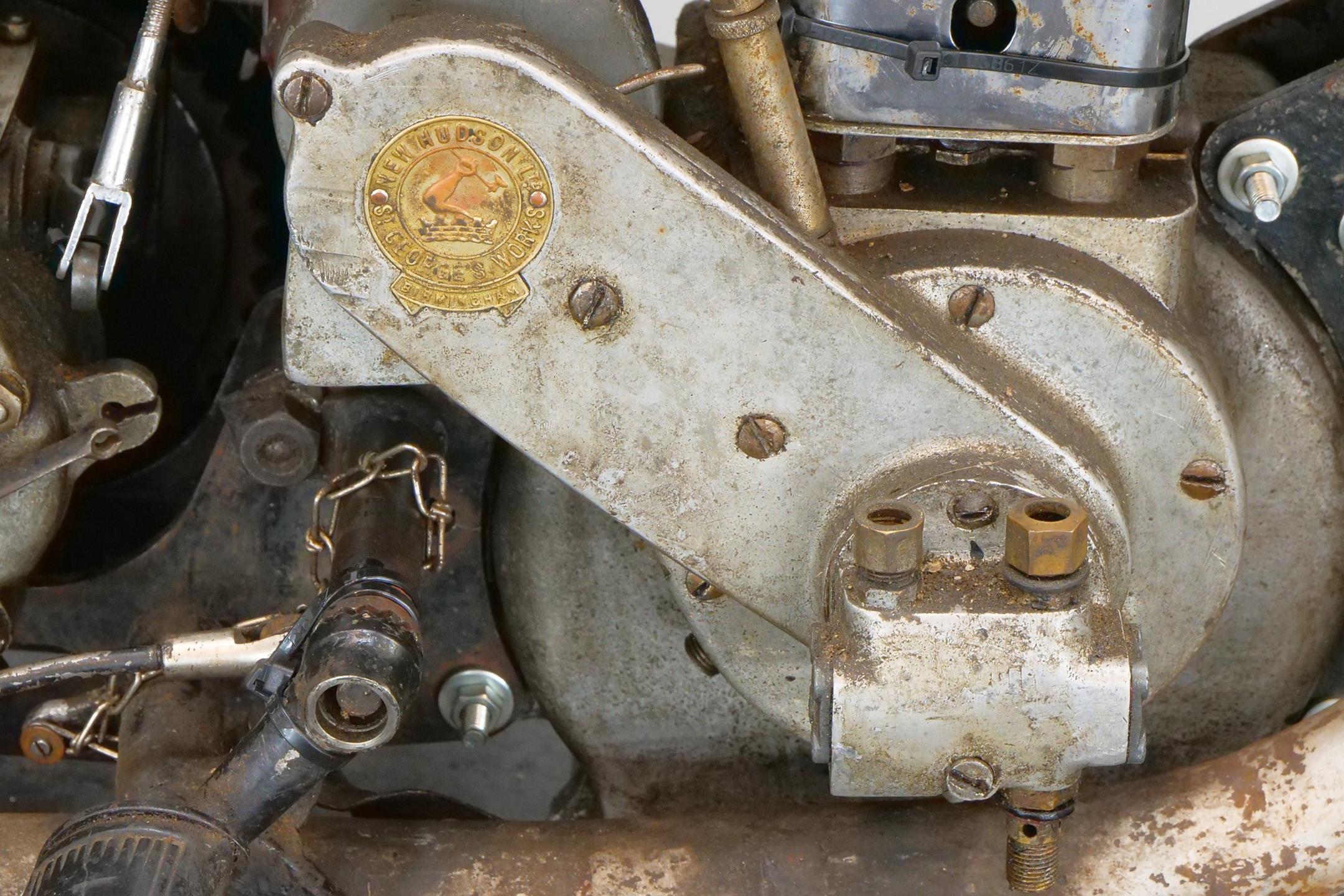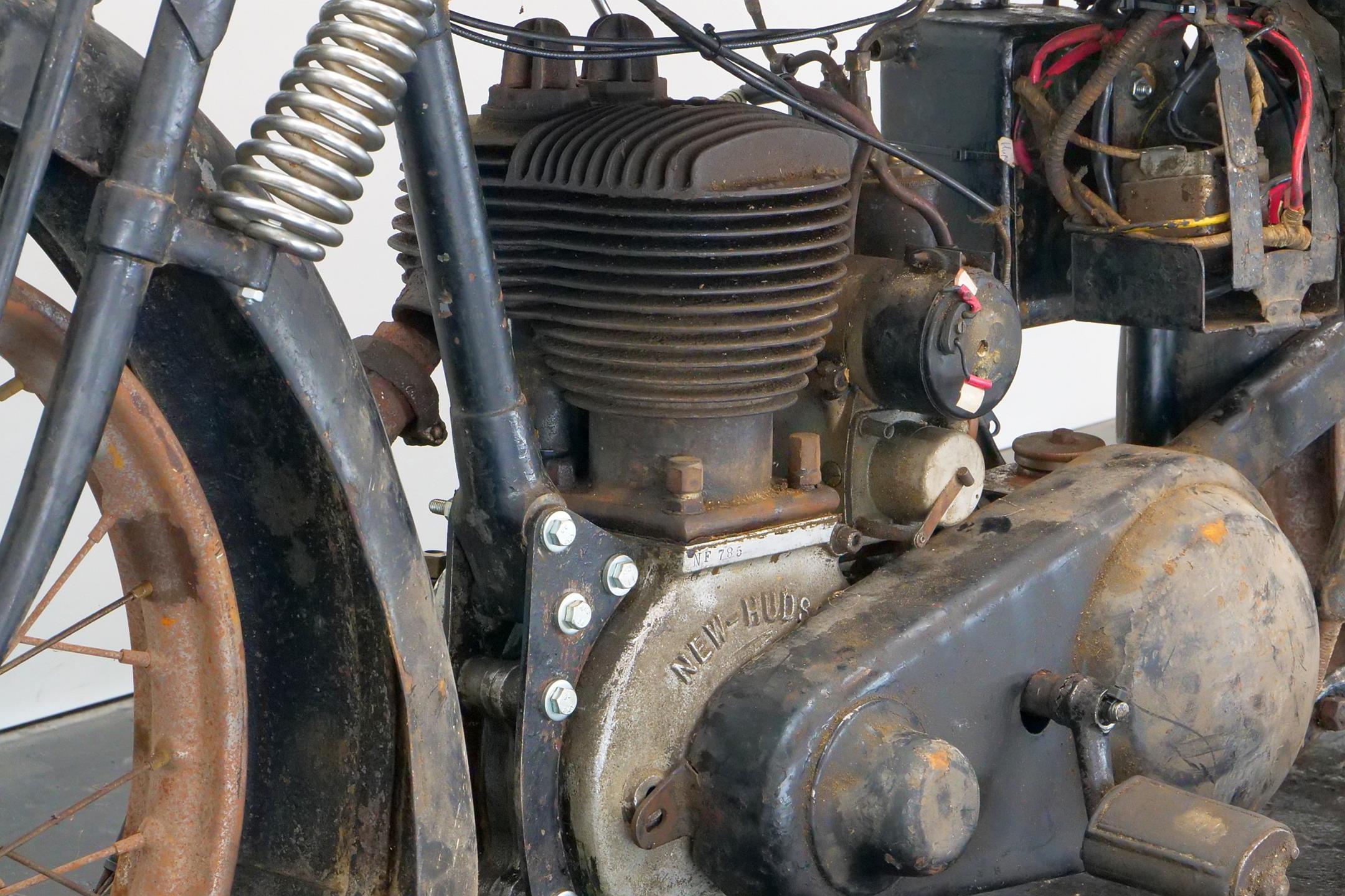 The New Hudson marque began in the late 1800's as a bicycle factory in Birmingham, England. The owner, George Patterson, made his first motorcycle in 1902, but as it was not a sales success, no more motor cycles were produced until 1910. From 1910 to 1932; with the exception of years 1915 to 1919 when WWI meant only munitions and bicycles were made; motorcycle production averaged about 2000 each year. The New Hudson range expanded between 1910 and 1915 using JAP engines, then the factory joined the war effort until 1919. As well as side-valve and OHV single-cylinder engines of 350 to 600 cc, they also built a 211 cc two-stroke and a number of three-wheelers with MAG engines. The company were always keen on gaining success in motor cycle sport and gained many good results. However lacking the finances of larger companies their best result in the Isle of Man TT was Jimmy Guthrie's second place in the Senior event in 1927.In 1932 due to the depression motor cycle production ceased as it was no longer profitable. However, the company continued to make bicycles, and also diversified into making the Girling brake systems for cars. In 1940 the bicycle factory began to produce an autocycle with a 98cc Villiers engine which was a success. The bicycle factory was purchased by BSA in 1943 and production continued under the New Hudson name. The Girling brake factory passed into the ownership of Joseph Lucas. After the second World War B.S.A. continued to make autocycles bearing the New Hudson name until 1957.