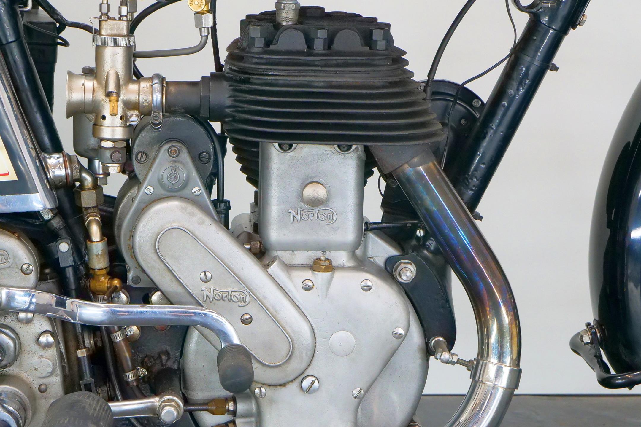 Norton relied on proprietary engines in its formative years - winning the inaugural Isle of Man TT with a Peugeot-engined machine - before introducing its own design of power unit in 1907. Designed by company founder James Lansdowne Norton himself, the long-stroke sidevalve single displaced 633cc, and the new model it powered became known as the 'Big 4'. Smaller capacity versions followed, and in 1911 the 500 adopted the classic 79x100mm bore and stroke dimensions which would characterise the half-litre (actually 490cc) Norton for the next 50 years. The 490cc engine was revised for 1914 and in 1921 the Model 16, as it had become known, received a new lower frame, becoming the 16H. Norton's trusty sidevalve would be continuously up-dated for the next 30-plus years, the engine arriving at its final incarnation, with dry sump lubrication and magneto repositioned behind the cylinder, in 1931. Many 16Hs saw service with Allied forces in WW2 before this long-running model took its final bow, together with the Big 4, in 1954.