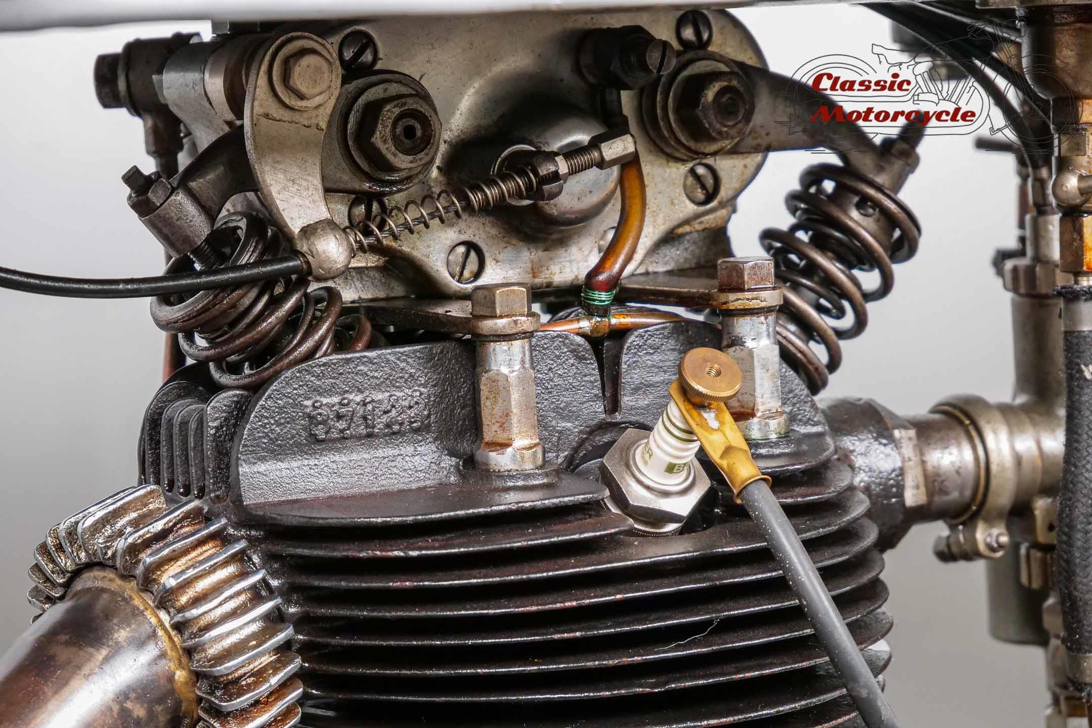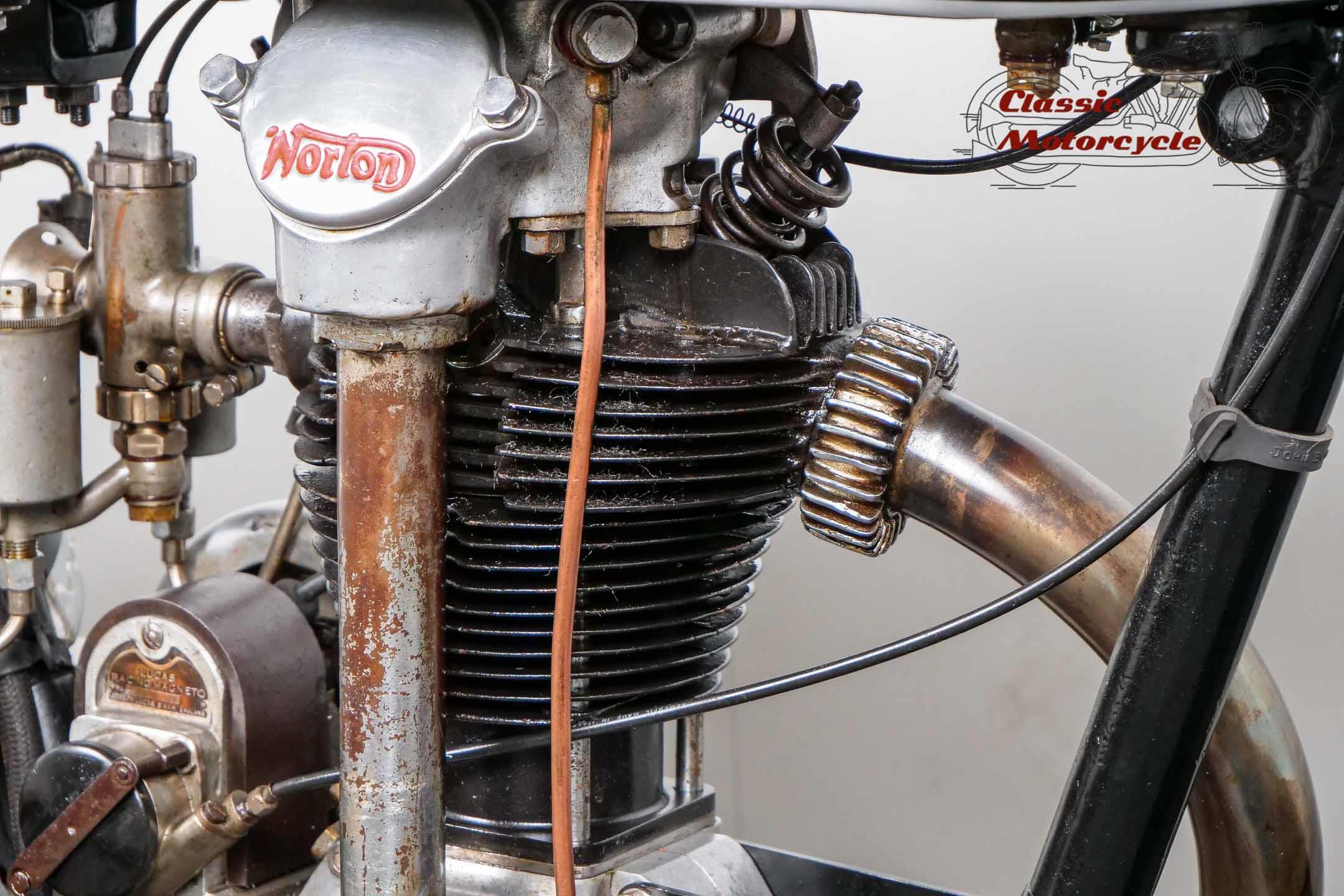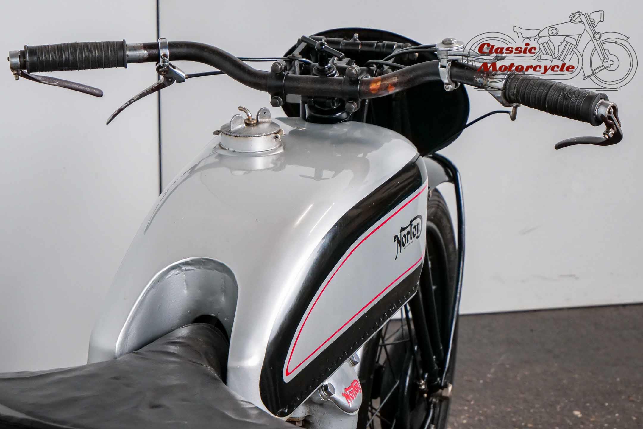 Norton Camshaft Junior, a name that has presented well in terms of design and performance. At that time, the flagship were the CS1 and CJ in the first OHC engine design. The CS was sold more often but is hardly seen today. The production numbers of the CJ were much lower than the CS which makes it an attractive collector's item today. Most of the produced CJ were delivered in the street version. Only a few were produced in "racing trim" like this machine offered here.