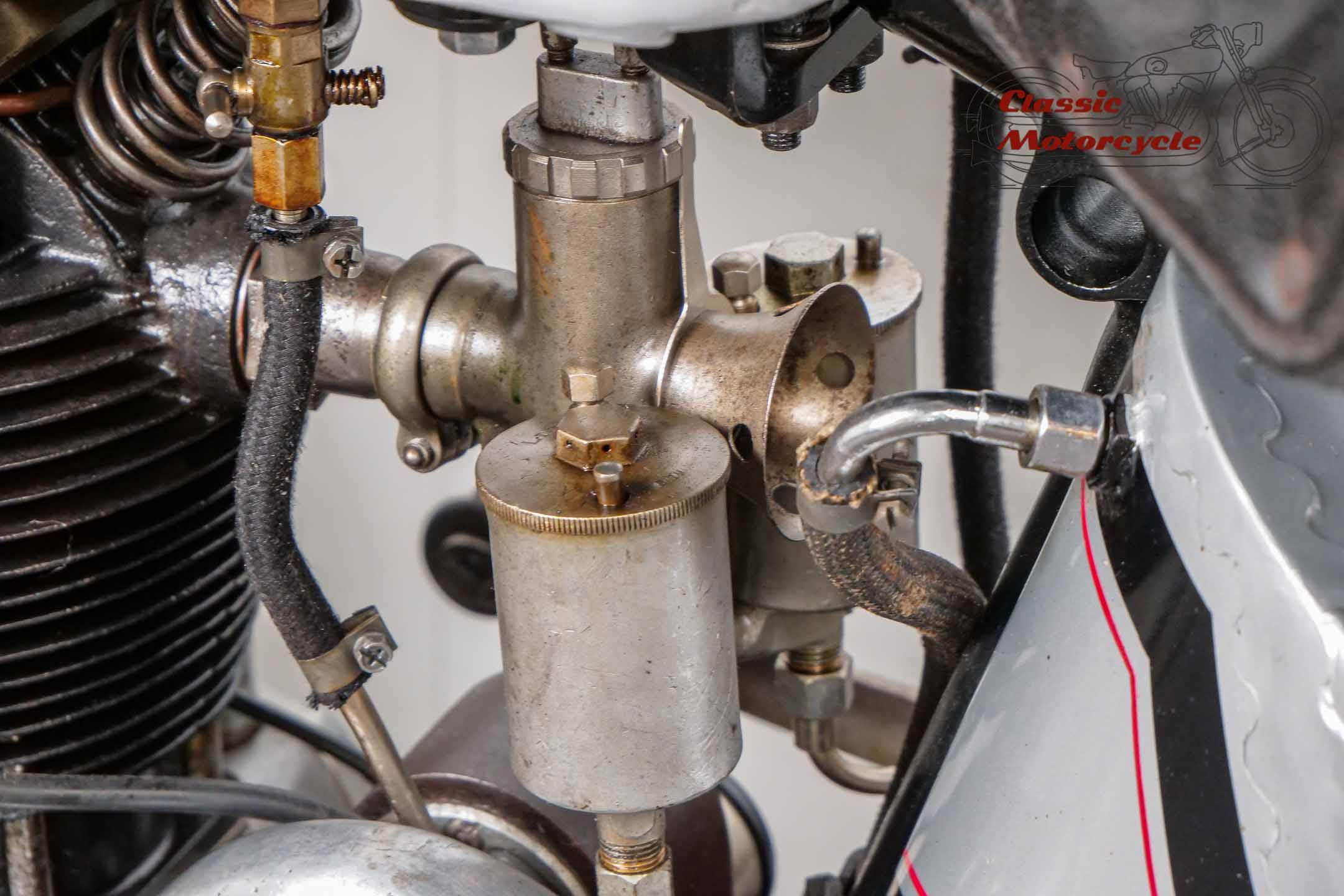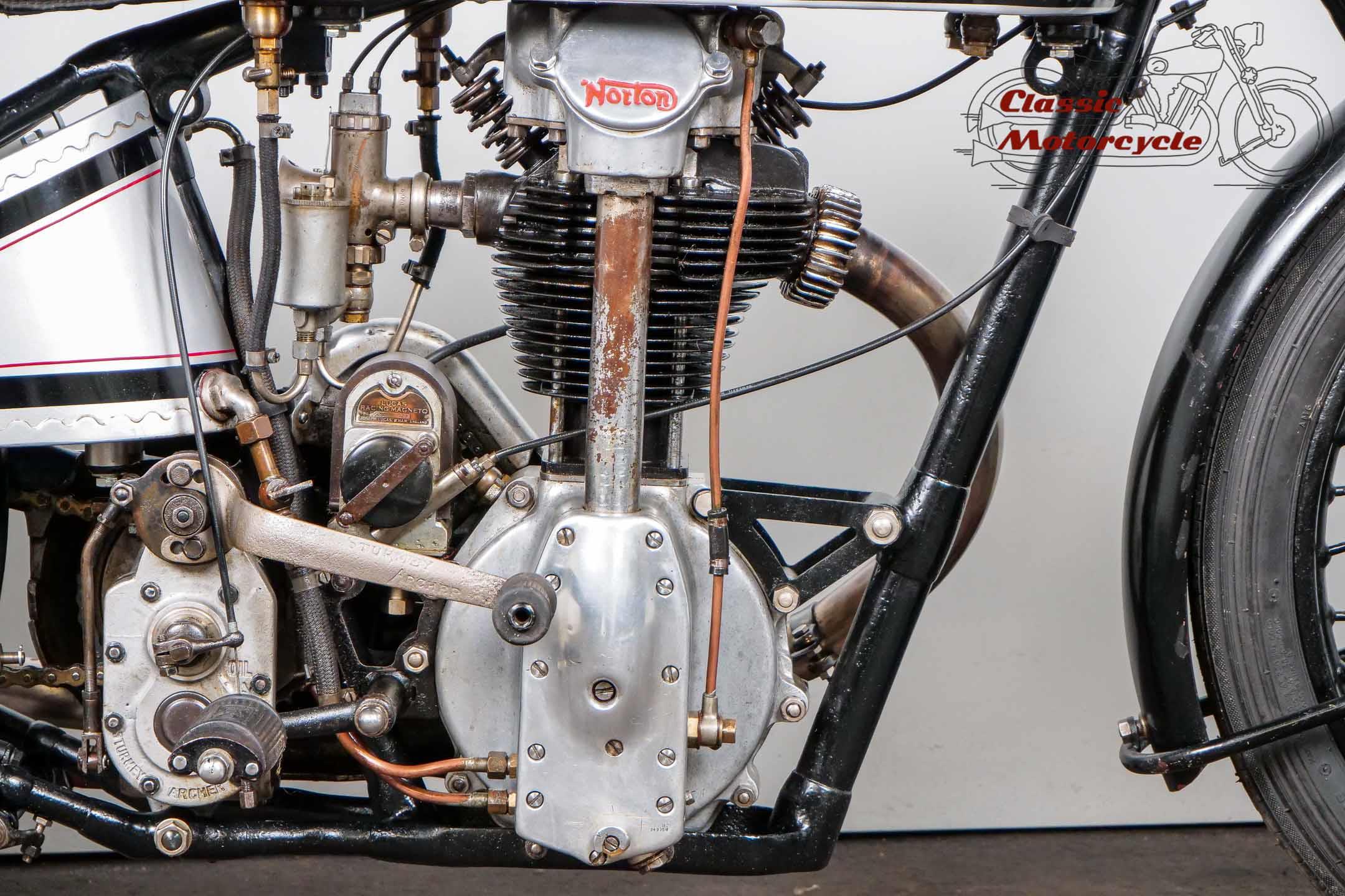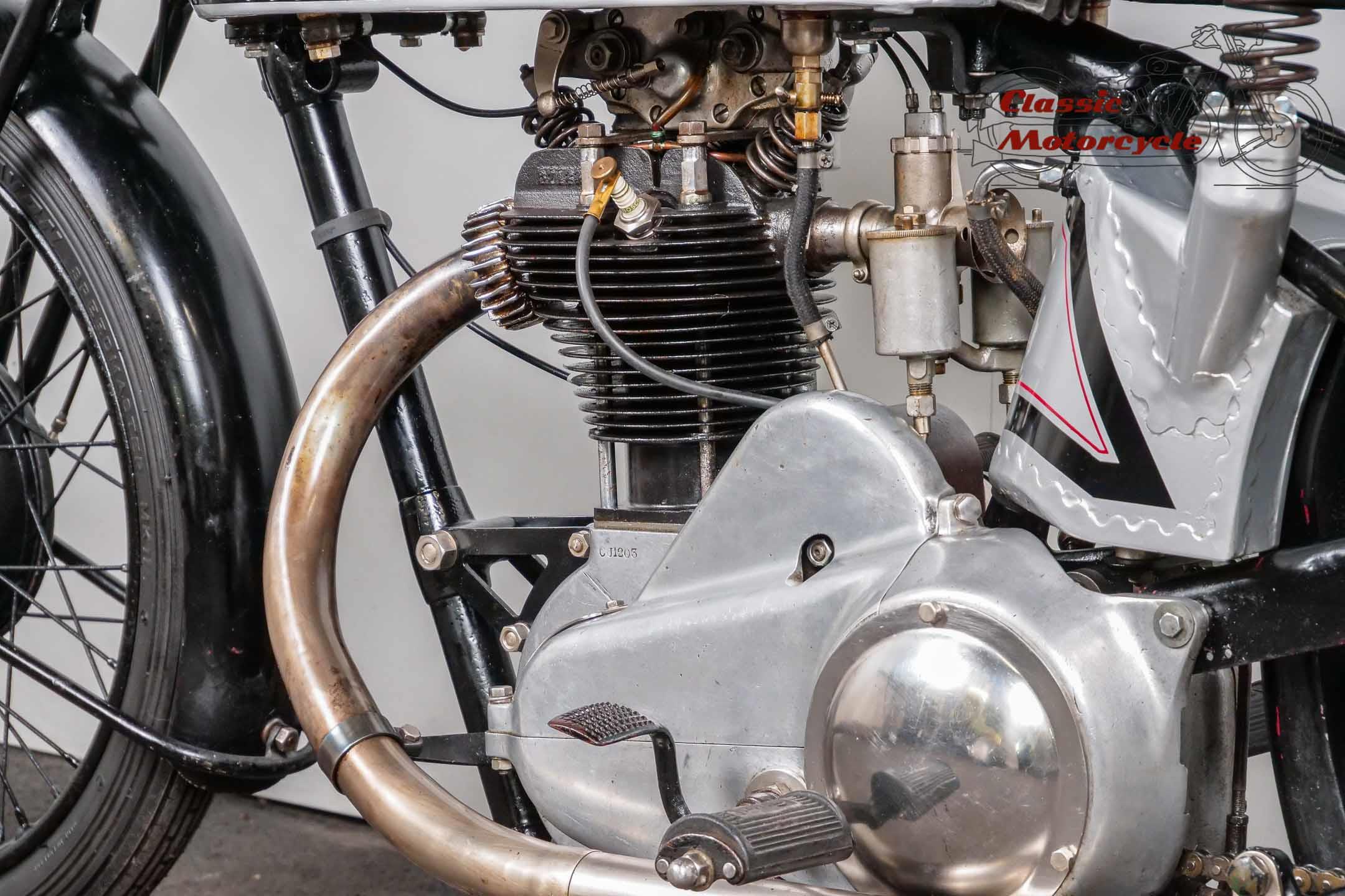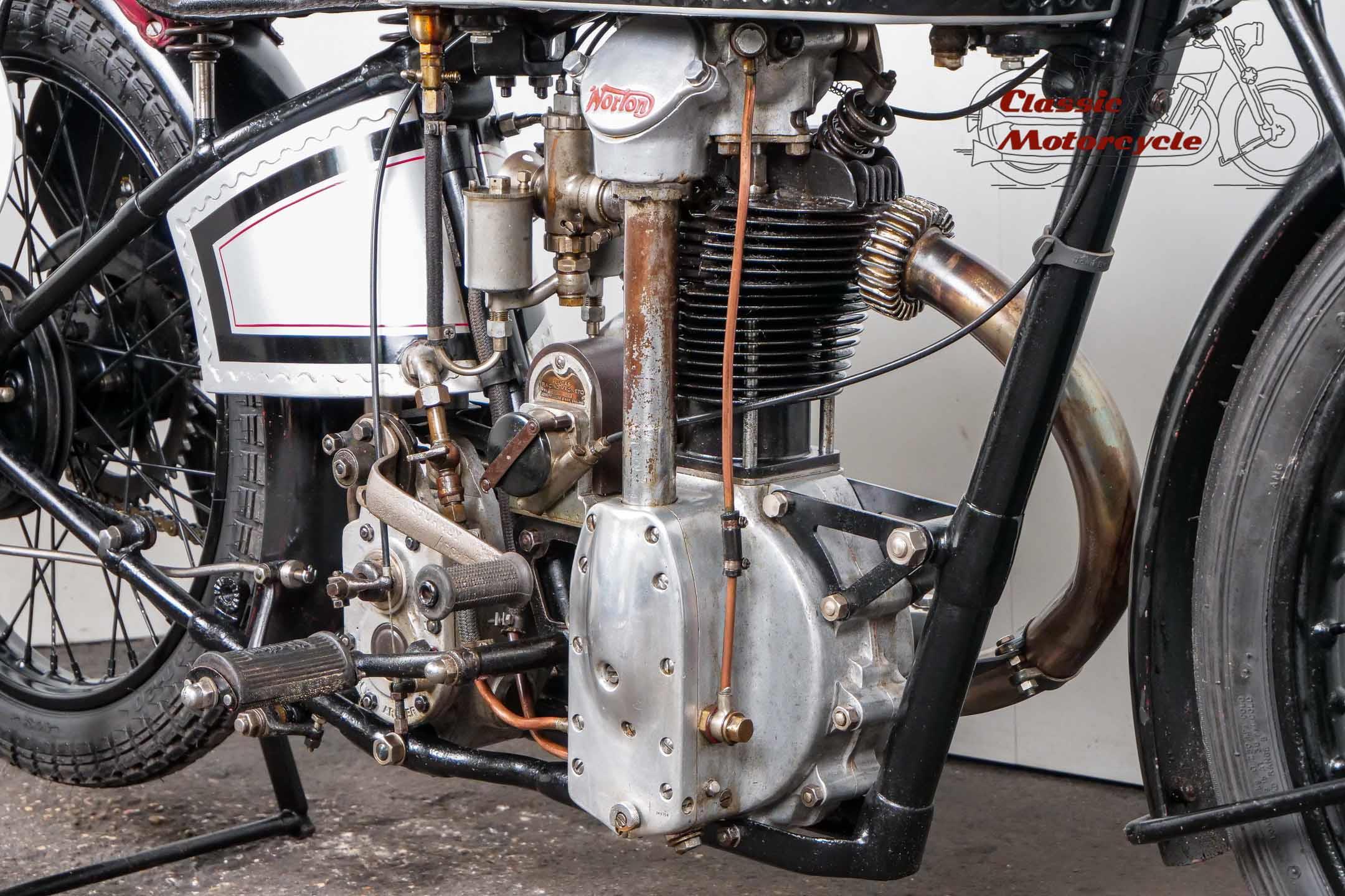 Norton Camshaft Junior, a name that has presented well in terms of design and performance. At that time, the flagship were the CS1 and CJ in the first OHC engine design. The CS was sold more often but is hardly seen today. The production numbers of the CJ were much lower than the CS which makes it an attractive collector's item today. Most of the produced CJ were delivered in the street version. Only a few were produced in "racing trim" like this machine offered here.