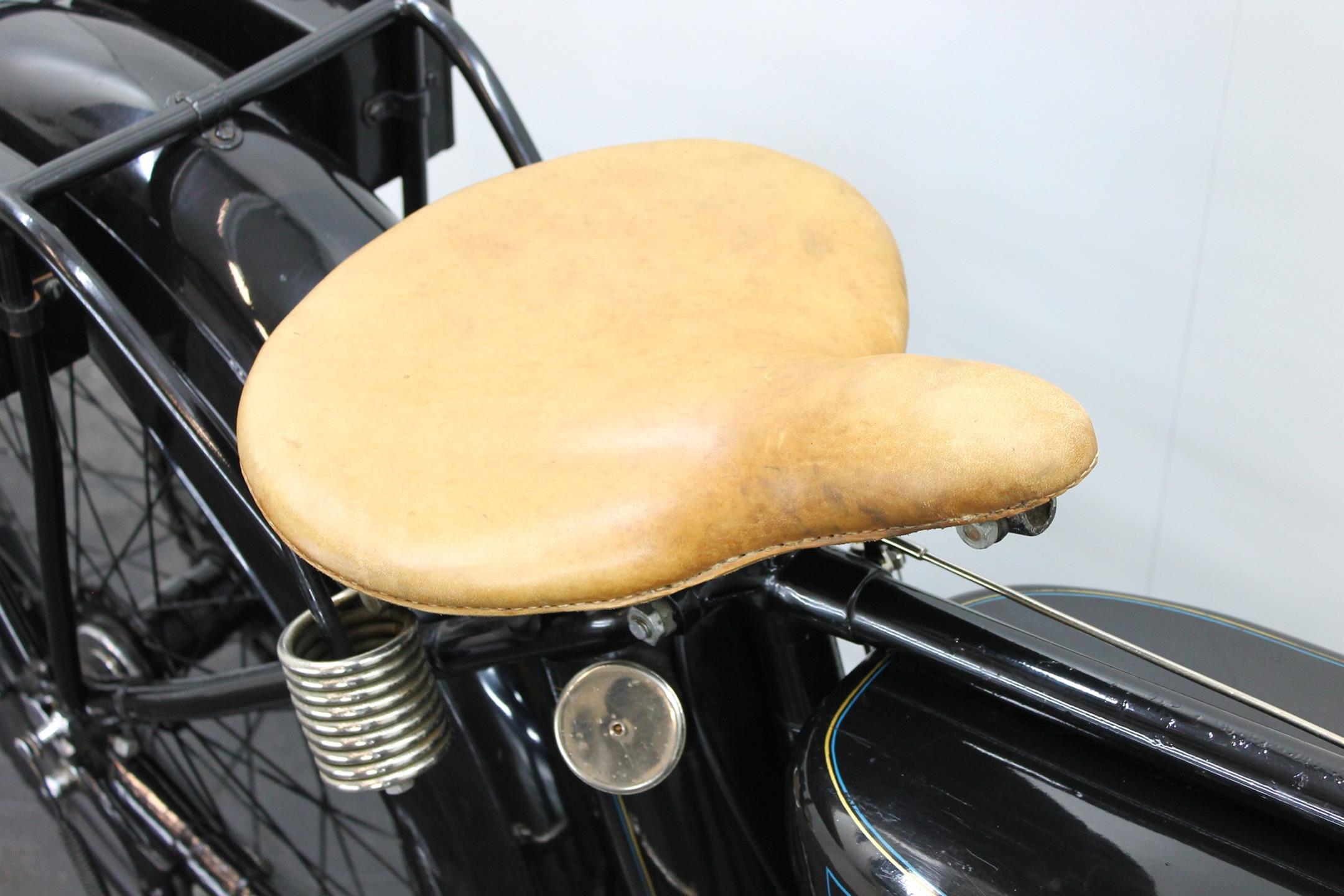 This authentic NSU 502 Sport twin has been found as a barn find in 1990 in Rügen, Germany. Afterwards this bike has been complete restored with careful. She is equipped with an acetylene lighting set, Pallas carburetor, Bosch magneto and a three speed gearbox.