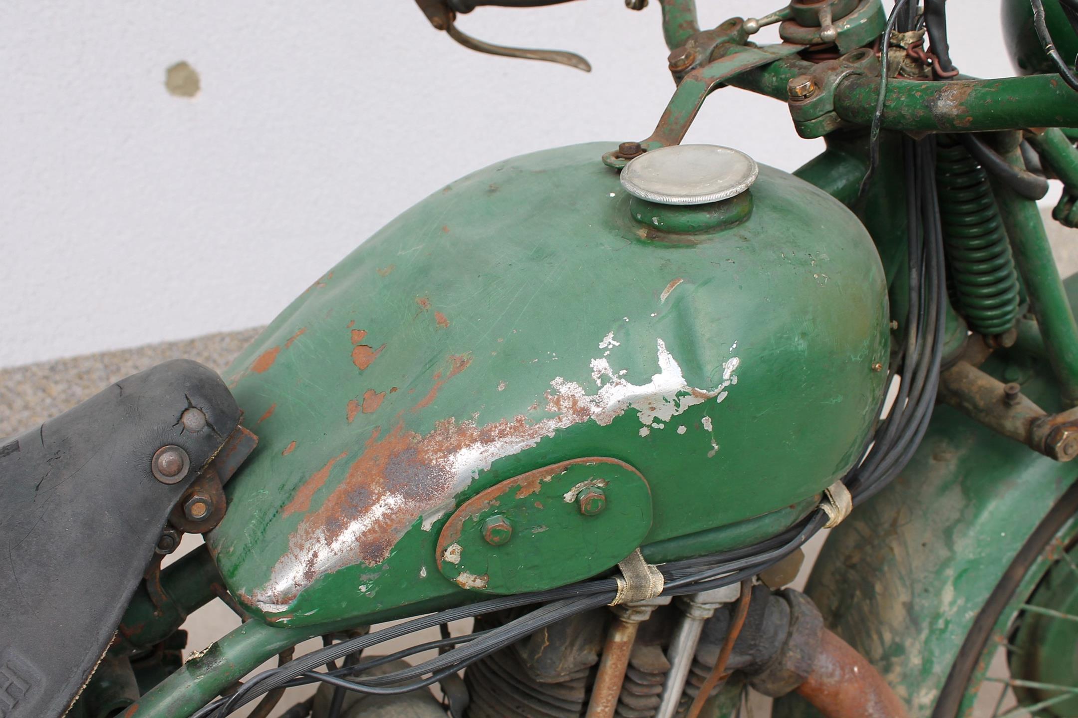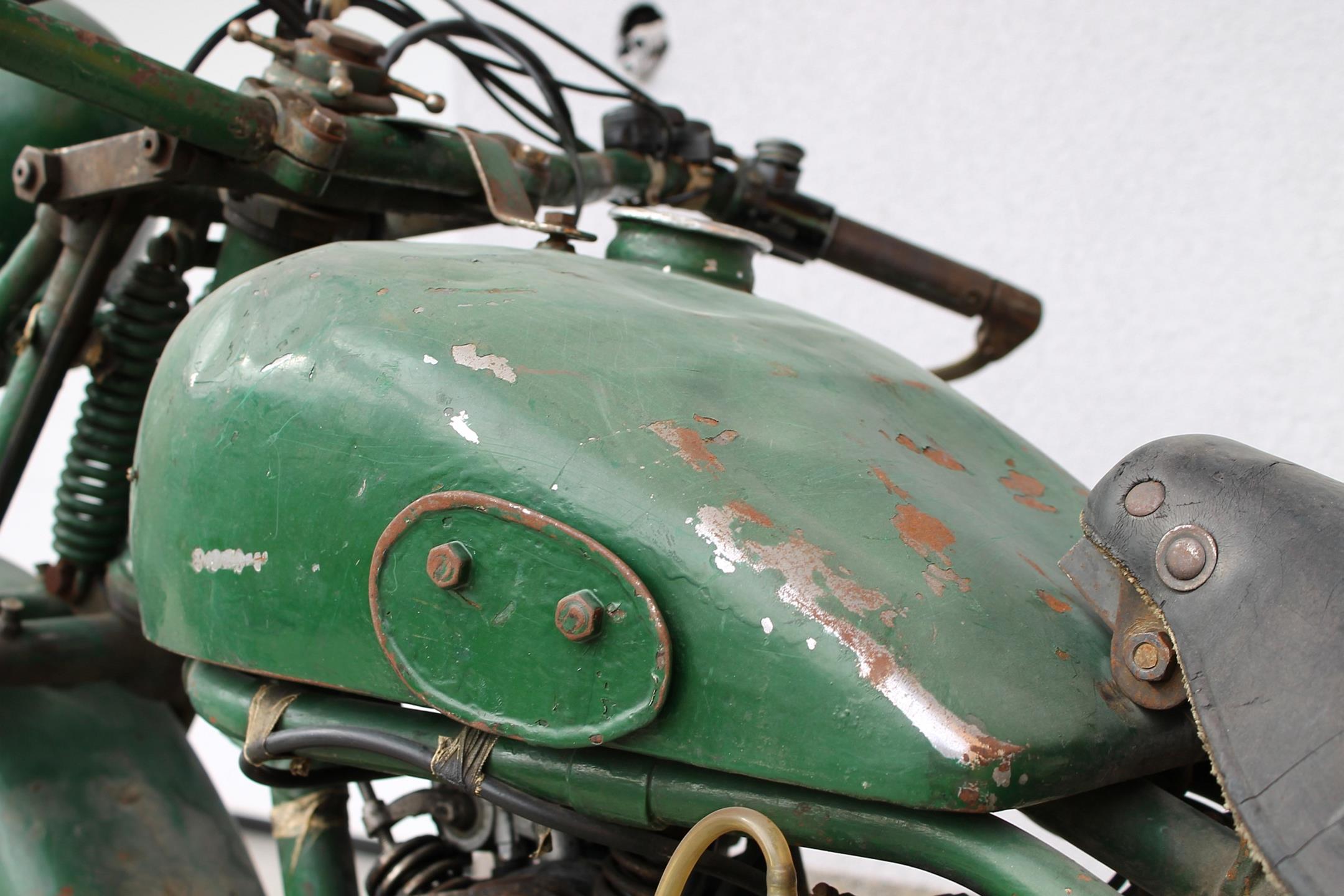 Carls Ostner itself was earlier a motorcycle racer. For this reason, some racing drivers such as Arno Zaspel (works-master bei O.D.), Franz Heck, Emil Schweitzer, Zwolle, Bocktenk, Hans von Tümpling used motorcycles of Ostner Dresden. The most used models for racing was the 1000cc combination and the 500cc SuperSport model. For series production used O.D. engines from 200cc – 1000 V-Twin. The engine supplier was Ilo, MAG, JAP, Sturmey Archer. This SS50 model with MAG engine and the Burmann 3 speed gearbox had a weight of ca.140kg. The engine had a displacement of 498cc and a power of 22ps at 4600upm. Bore: 82mm / Stroke: 94mm. The pistons were of light alloy. The Burmann gearbox was very solid build and equipped with a 4-plate clutch. The heavy frame was designed for good handling at high speeds. The frame was very sturdy and torsionally rigid. The main tubes of frame are made of Swedish special steel. The junction sleeves were made of shatterproof and forgeable cast iron. Willy Ostner were 10 years warranty on the frame. The SS50 had 3.5x25 inches tires and reached a topspeed of 130km/h. For the deceleration the motorcycle were equipped with a front brake with 200mm diameter and a rear brake with 150mm. The TS50 ioe was the less powerfull model of the SS50 ohv.
