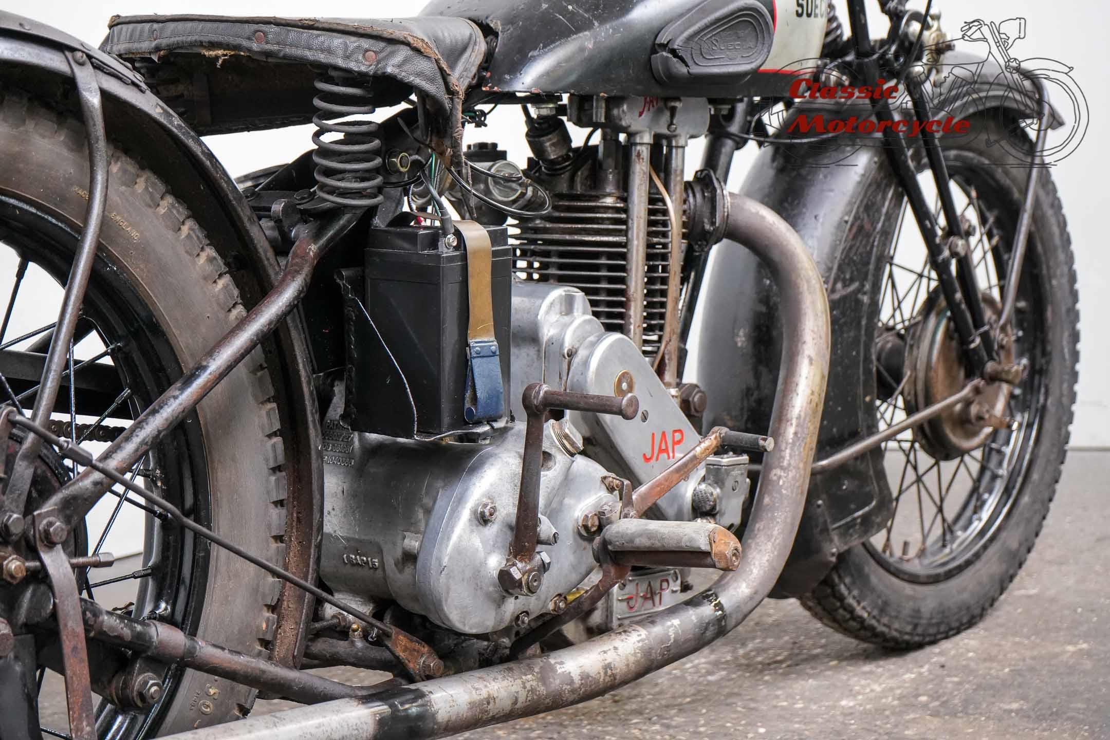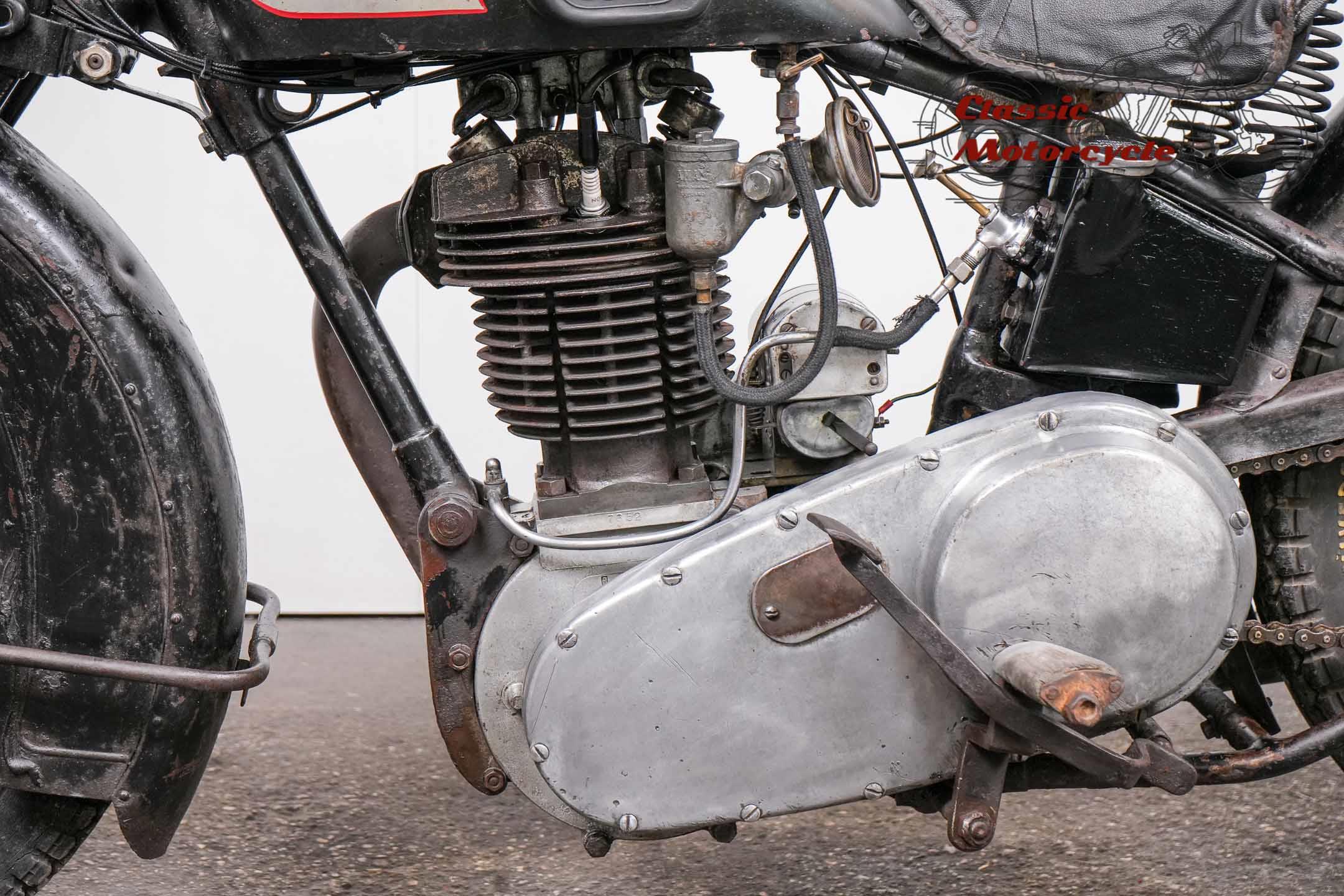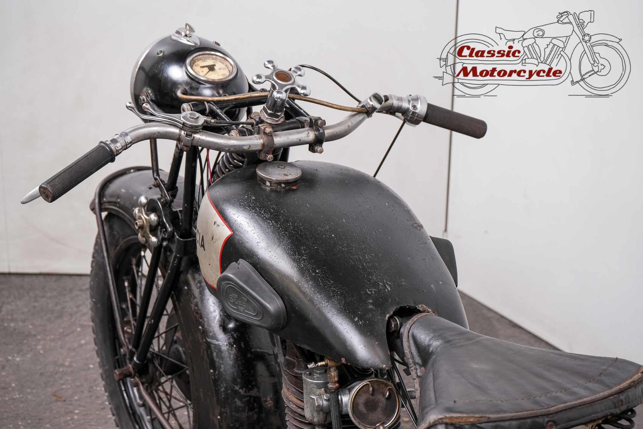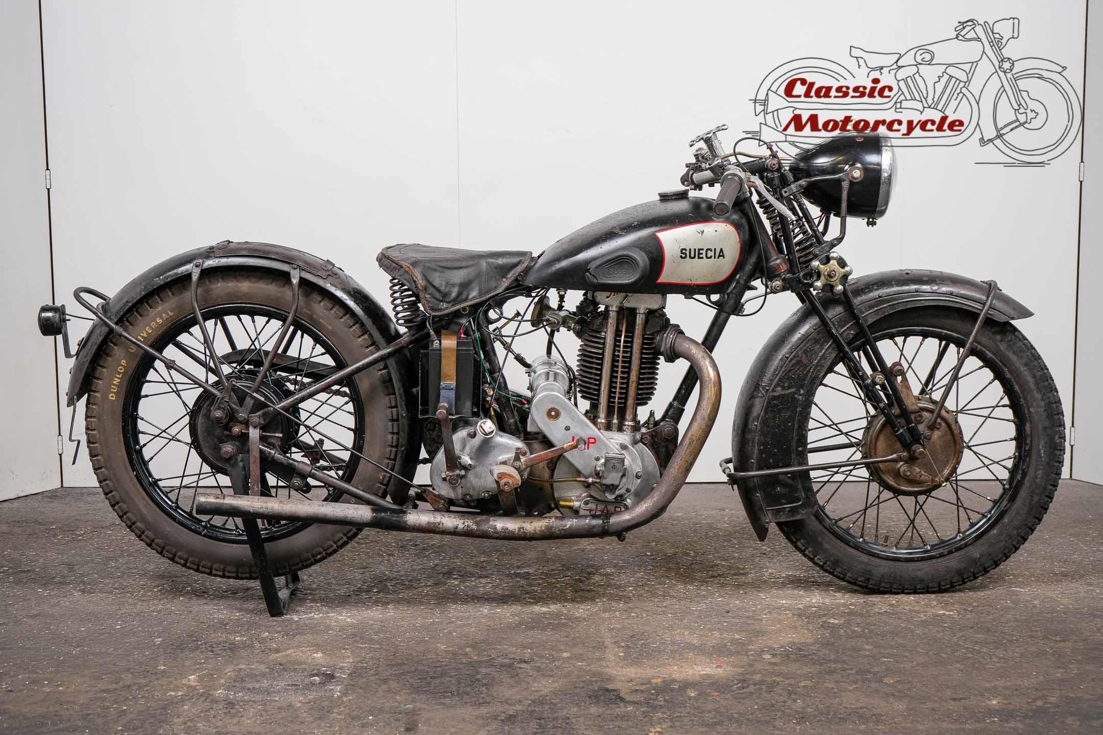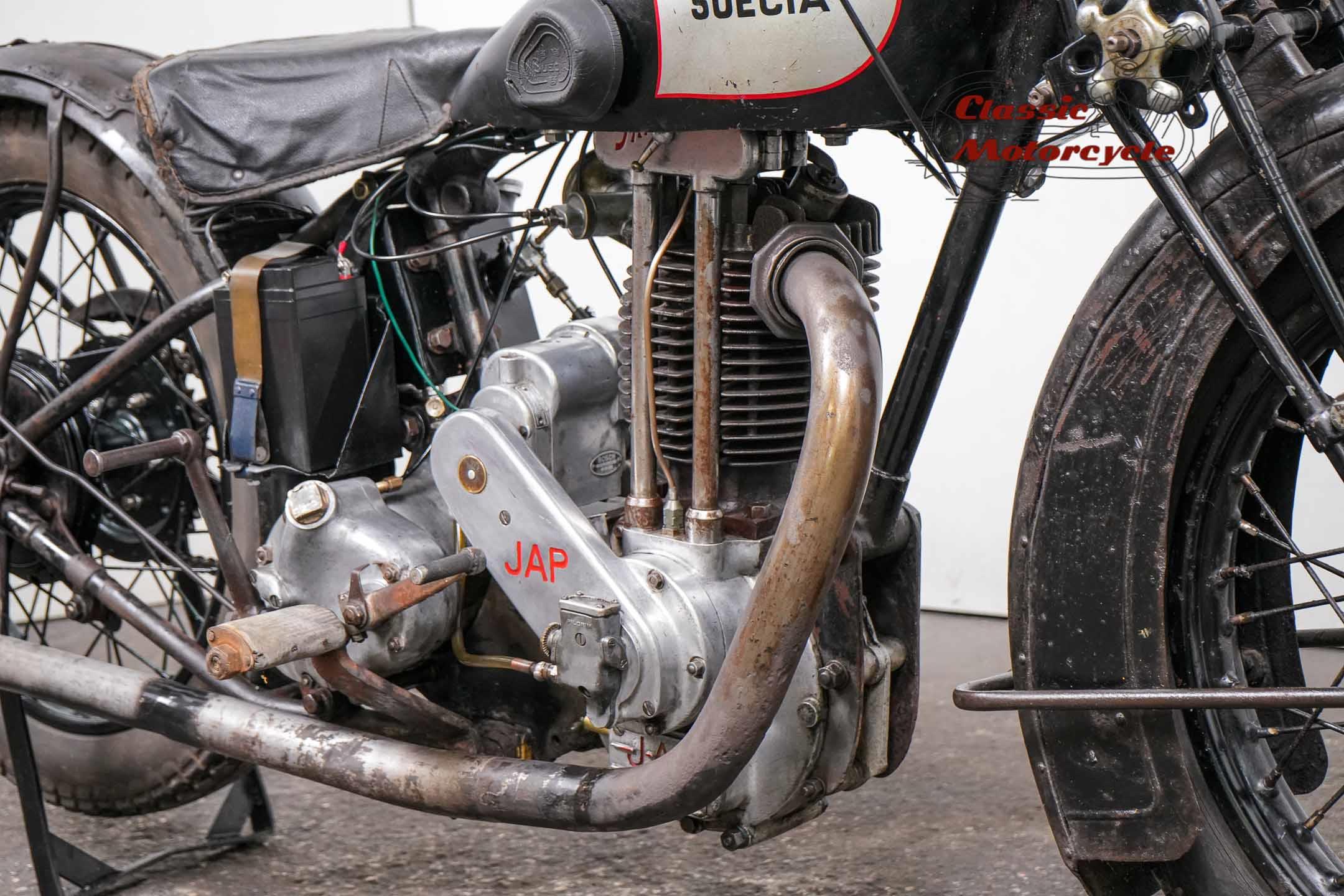 Suecia, a strong pre-war motorcycle brand from Sweden. The manufacturer was very keen to install high-quality parts on its motorcycles. The Sport 600 was also created with this in mind. The machine is bursting with power with its 600cc ohv JAP single cylinder. With every ignition there is a thrust forward. The engine still works as it did on the first day. The machine is largely in its original condition and still has a copy of the papers from Sweden. A rare opportunity, a ready to ride machine with original paint.
