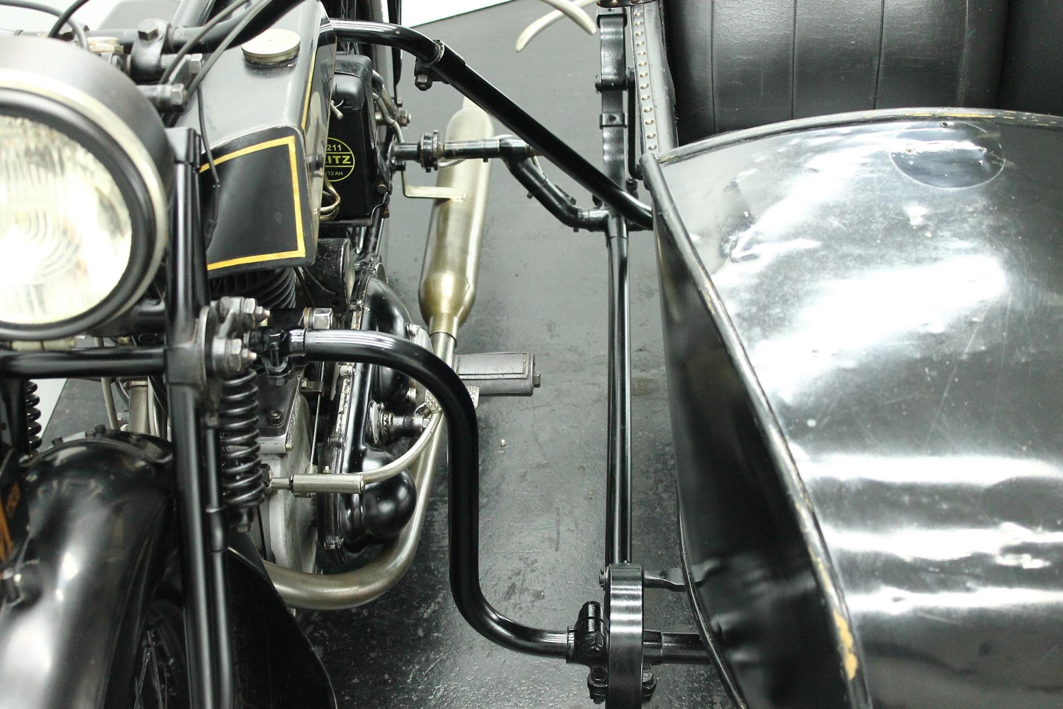 This fine “Longstroke“ combination is equipped with a complete Bosch lightning system, AMAC carburetor. The bike bears it´s first paint has a wonderful patina. It runs well.