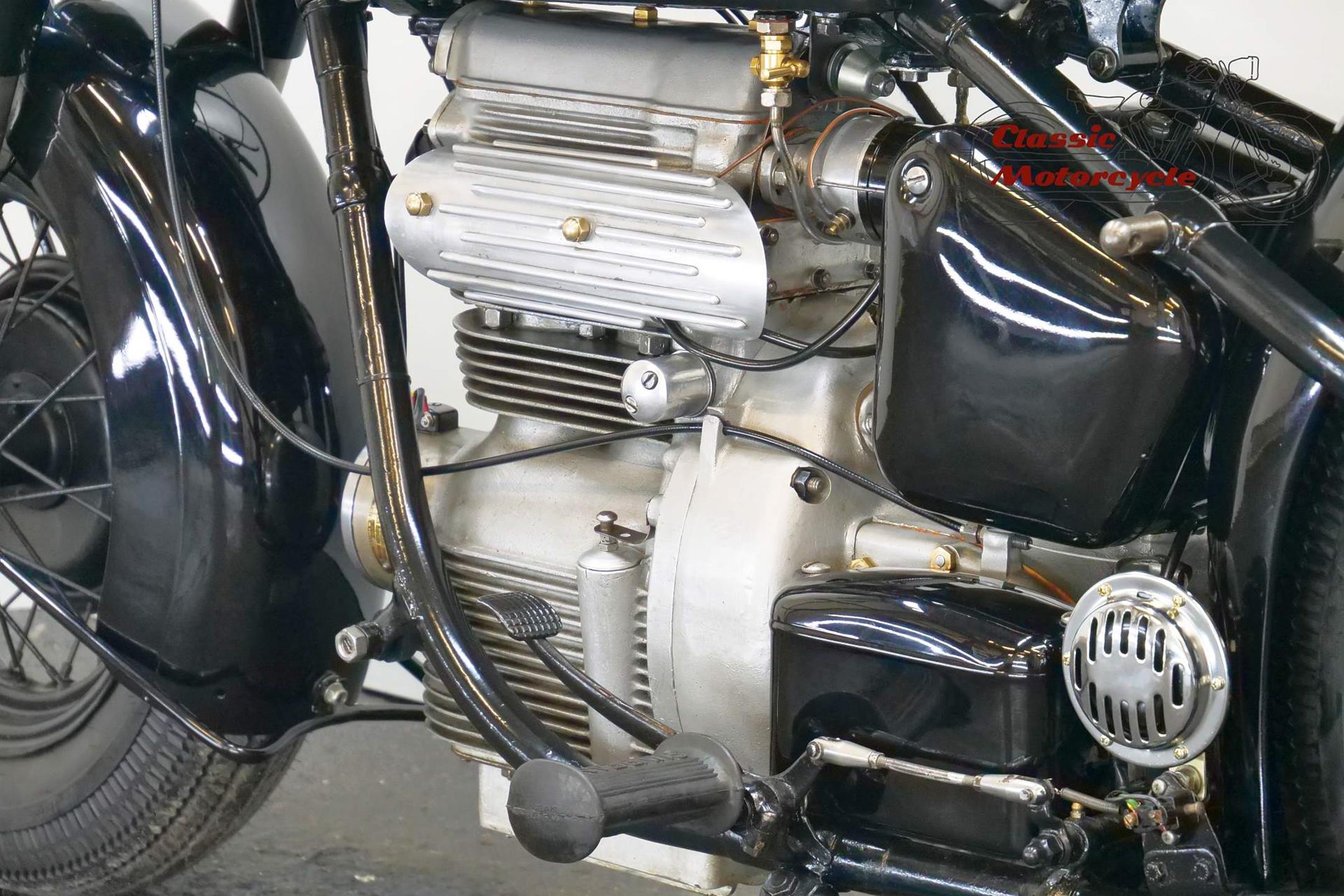 Designed in wartime, the Sunbeam inline twin was introduced in 1947. A luxury tourer inspired by the pre-war BMW, it was of advanced specification with overhead-camshaft engine, shaft drive, and plunger rear suspension. The clutch housing and four-speed gearbox bolted directly to the back of the engine, which was rubber mounted in the duplex loop frame, an innovation that required a flexible joint in the exhaust system ahead of the silencer. The first S7 version was equipped with balloon tyres, a feature not carried over to the more conventional S8 introduced in 1949. Never as popular as BSA's more performance orientated models, the gentlemanly S7 and S8 remained in production until 1957.