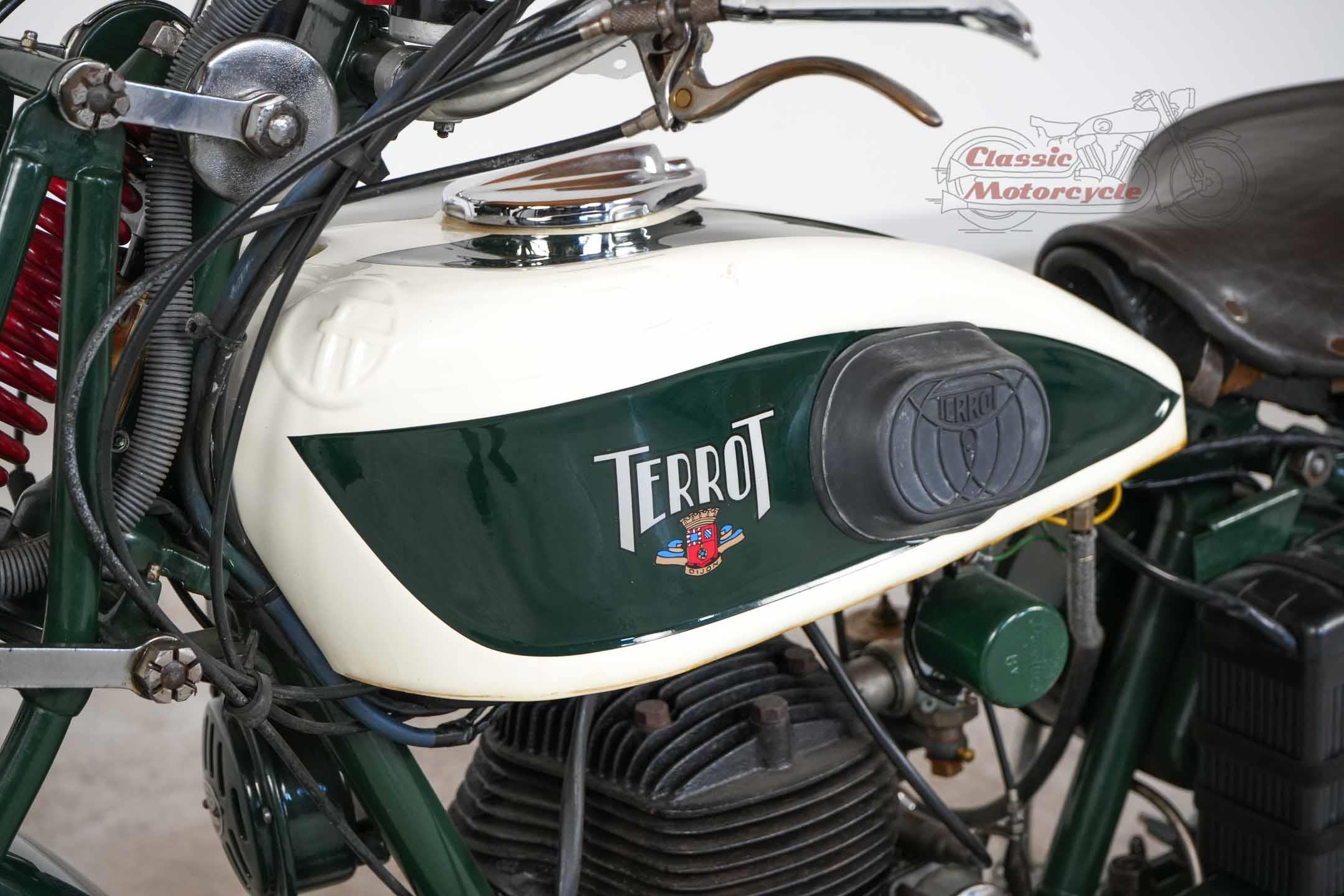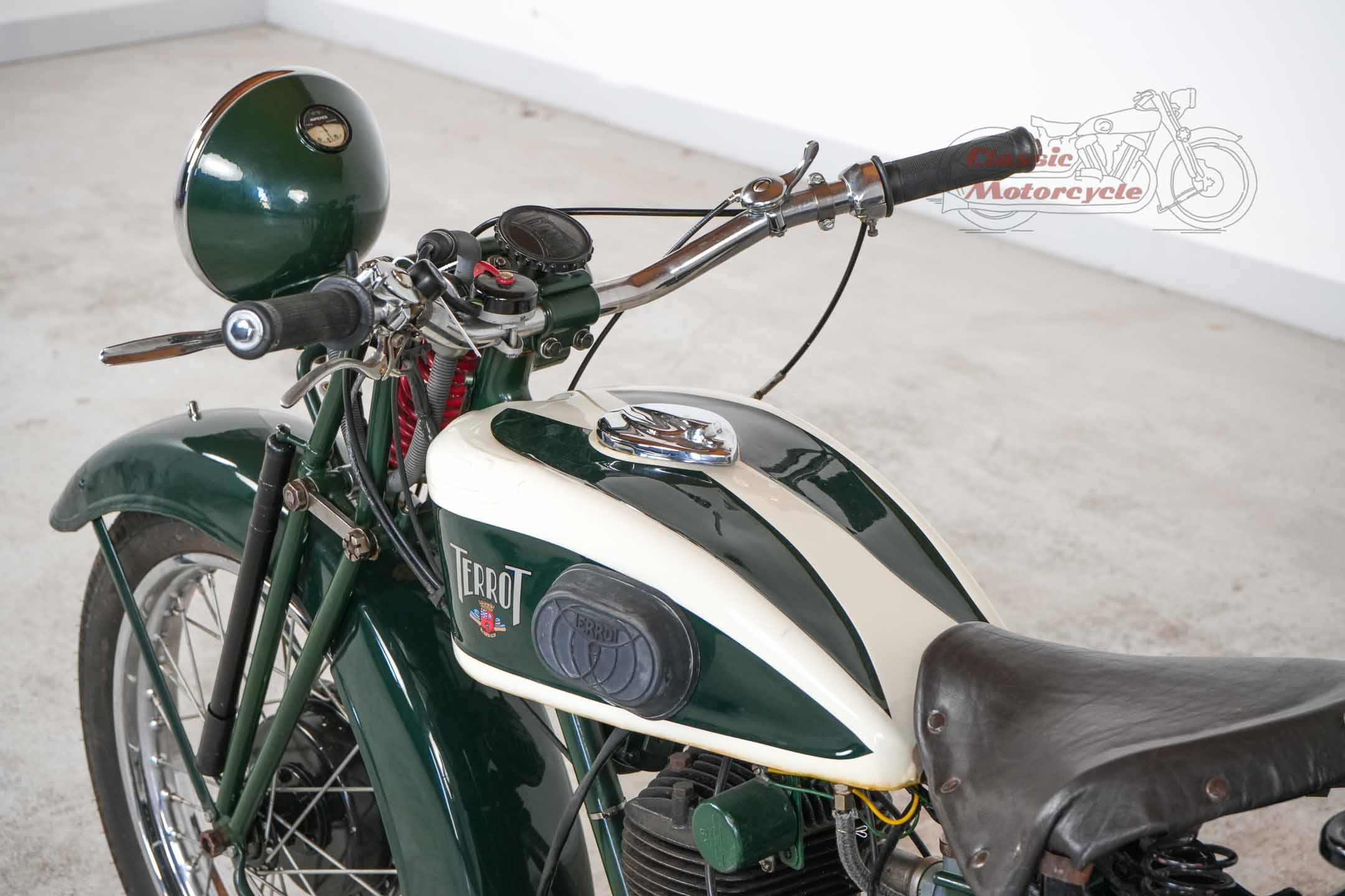 For sale is a well-preserved Terrot HDA from 1938 with a 350cc engine. The motorcycle was last ridden about a year ago and has been stored dry ever since.