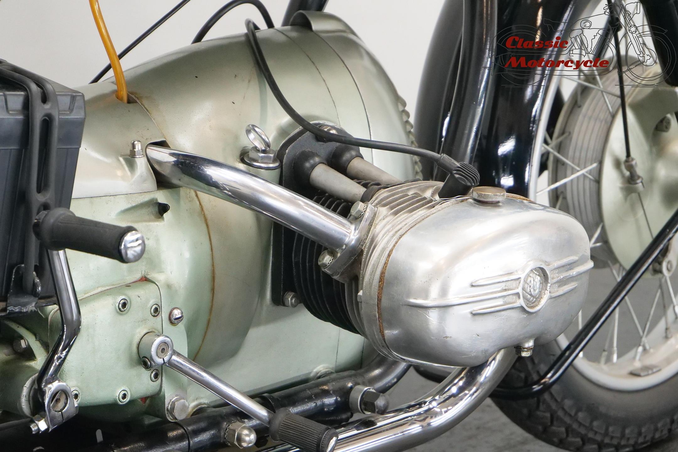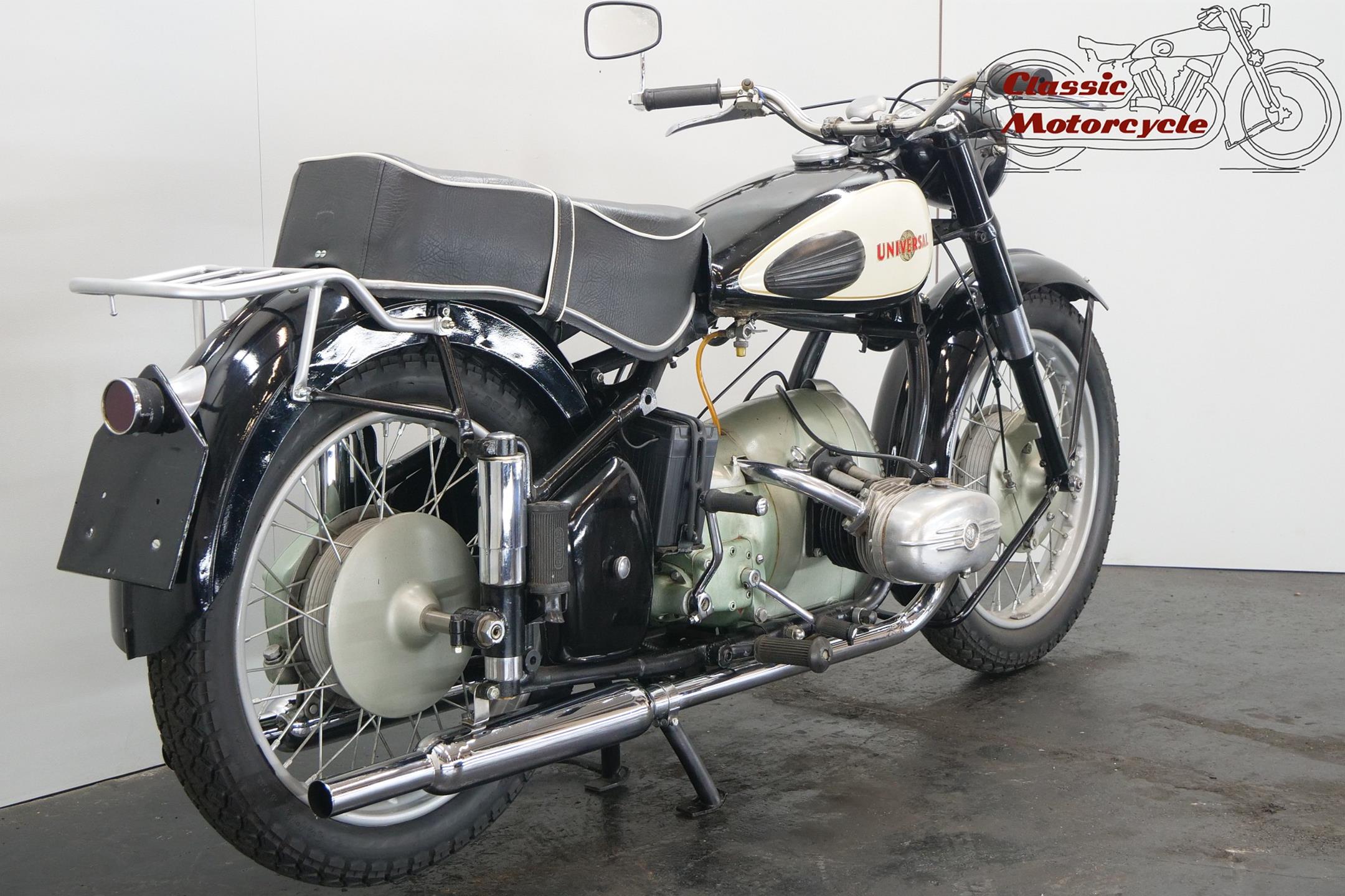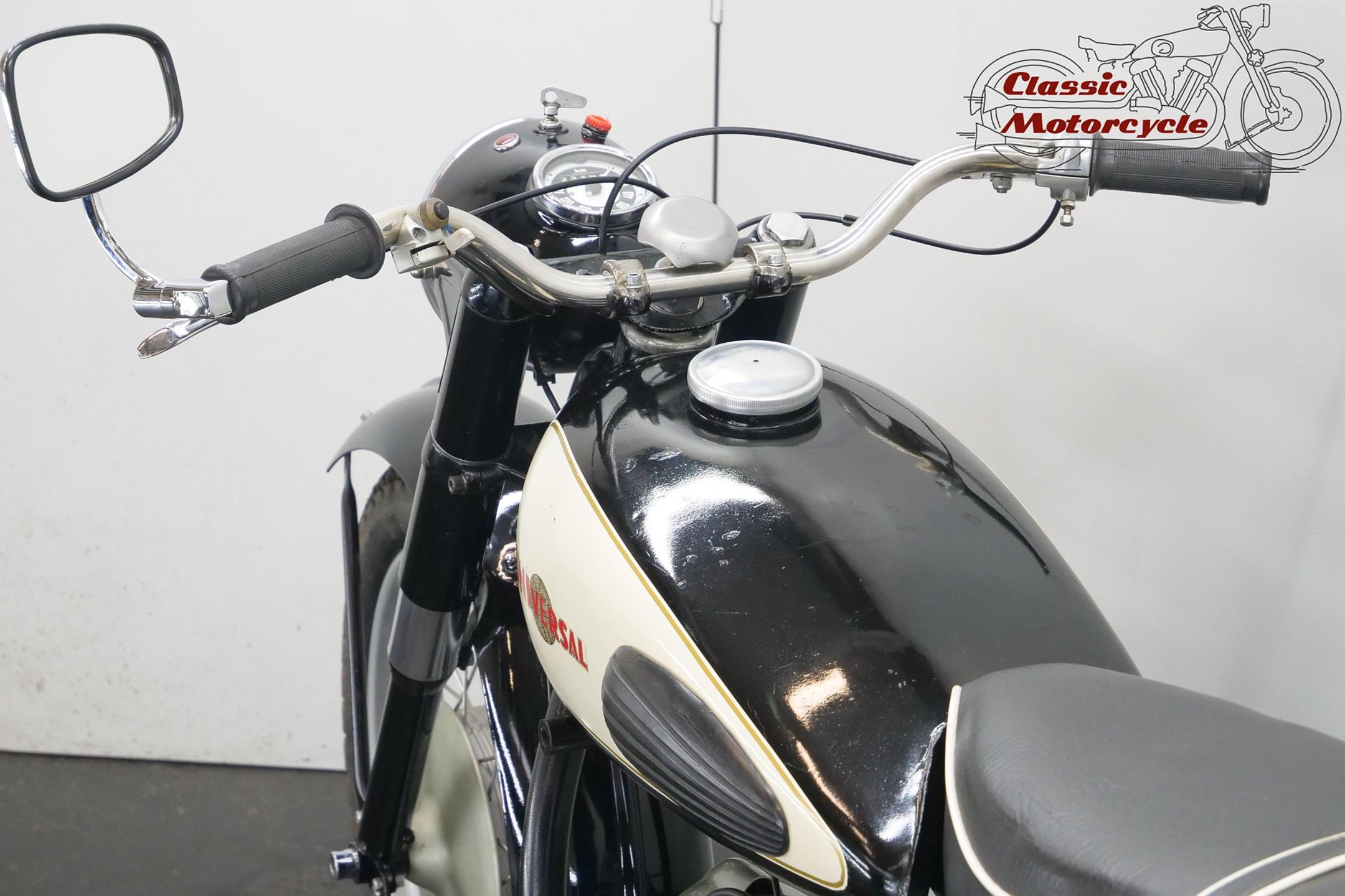 Universal motorcycles were made in Switzerland by the same factory that had previously marketed its products under the ‘Helvetia’ brand name. Established in 1928, Universal at first used proprietary engines supplied by JAP, Rudge (Python), Anzani and Ilo before getting around to making its own. At the top of the range in the 1930s were large sports models, powered by overhead-valve JAP v-twin engines, which looked every bit as handsome as their British counterparts. Universal began supplying motorcycles to the Swiss Army prior to WW2, these being mainly large, sidevalve-engined v-twins used for both solo and sidecar work, and during the war developed a range of models primarily for military use, powered by narrow-angle v-twin engines of 676cc and 990cc. After WW2 they produced a flat twin of 578cc along with a shaft-driven 250cc single. In the 1960s they had an agreement with Rabeneick to whom they supplied Universal 250cc shaft-drive engines. The company’s most memorable 578cc post-war model was B40 with sidevalve, B50 and the later 2B Meteor both with overhead valve and all with shaft-driven transverse ‘flat twin’ inspired by the BMW. Universal motorcycles were last produced in 1964.