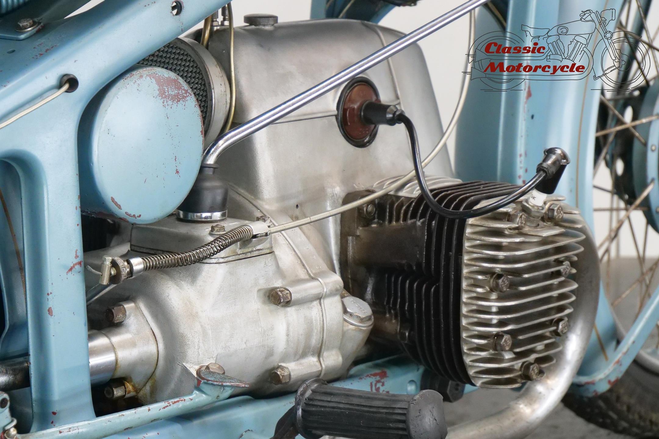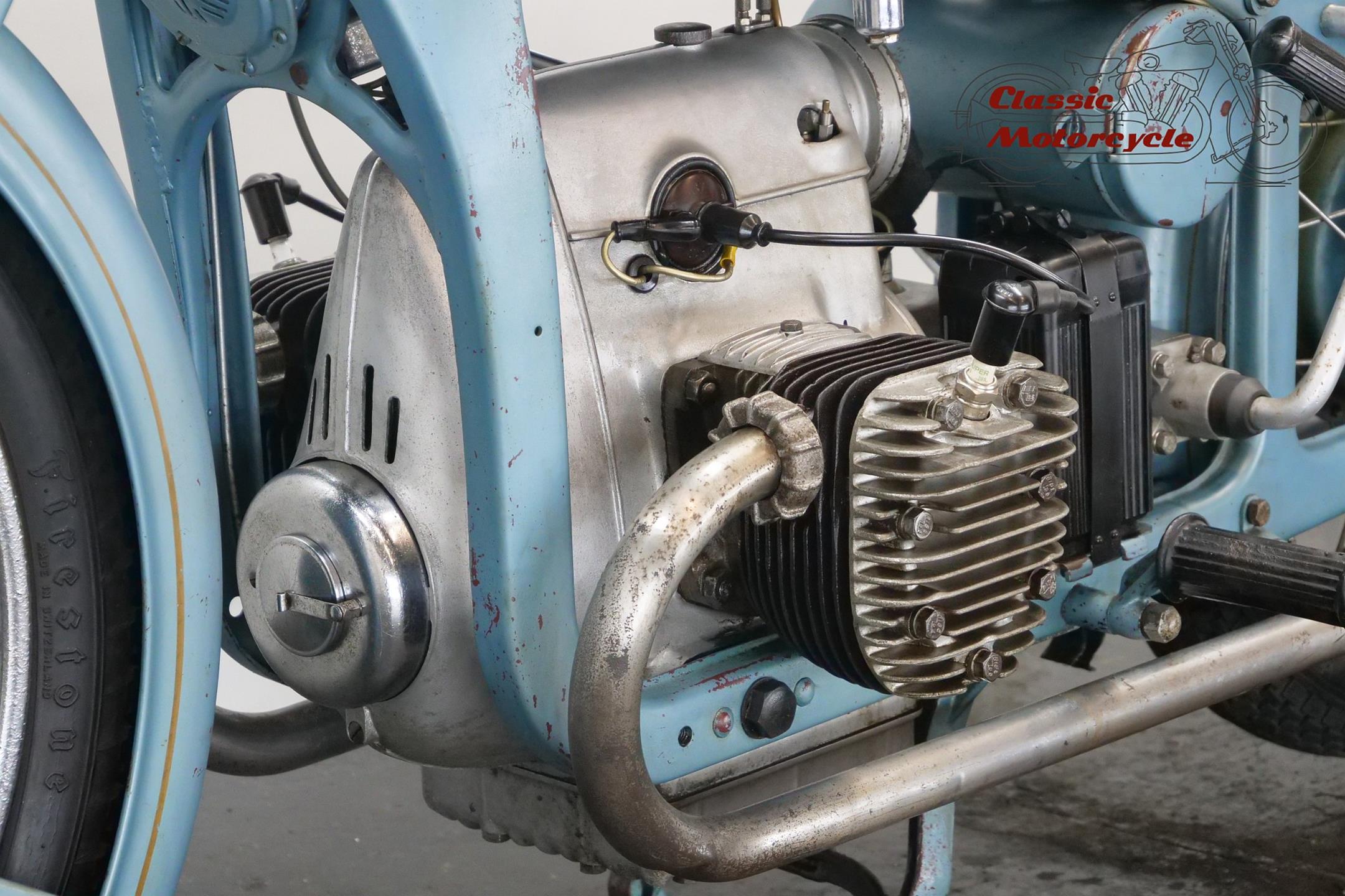 This well designed transverse twin bike bears a lot of lovely patina and runs well.
