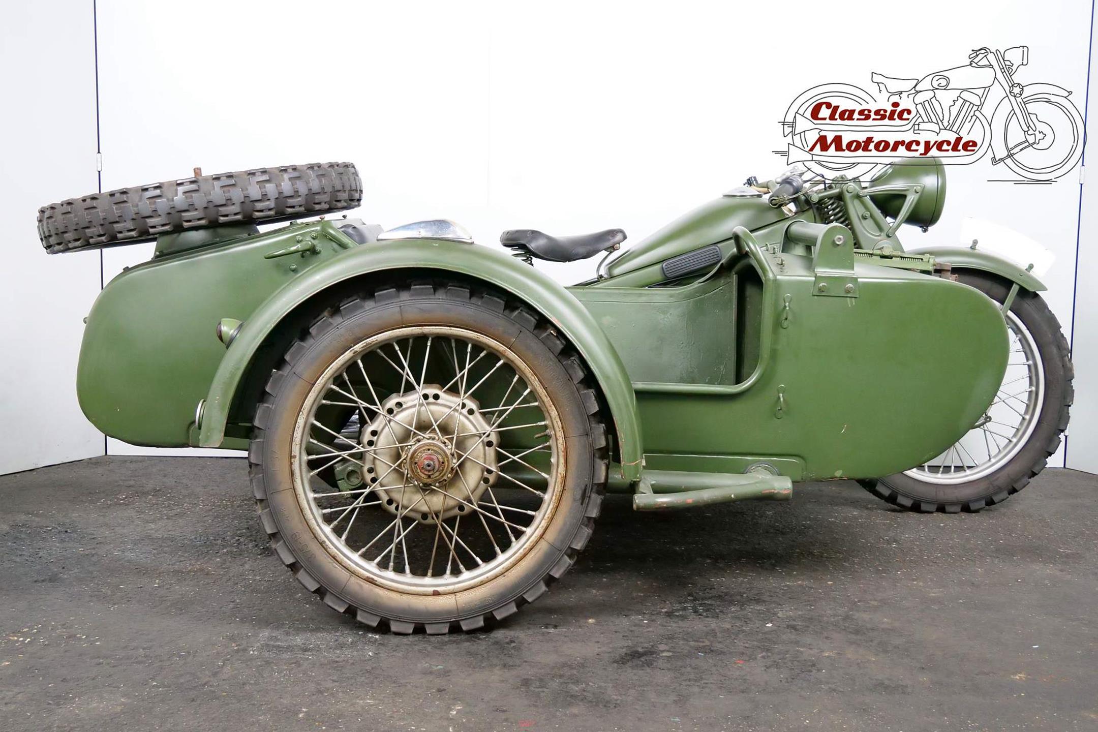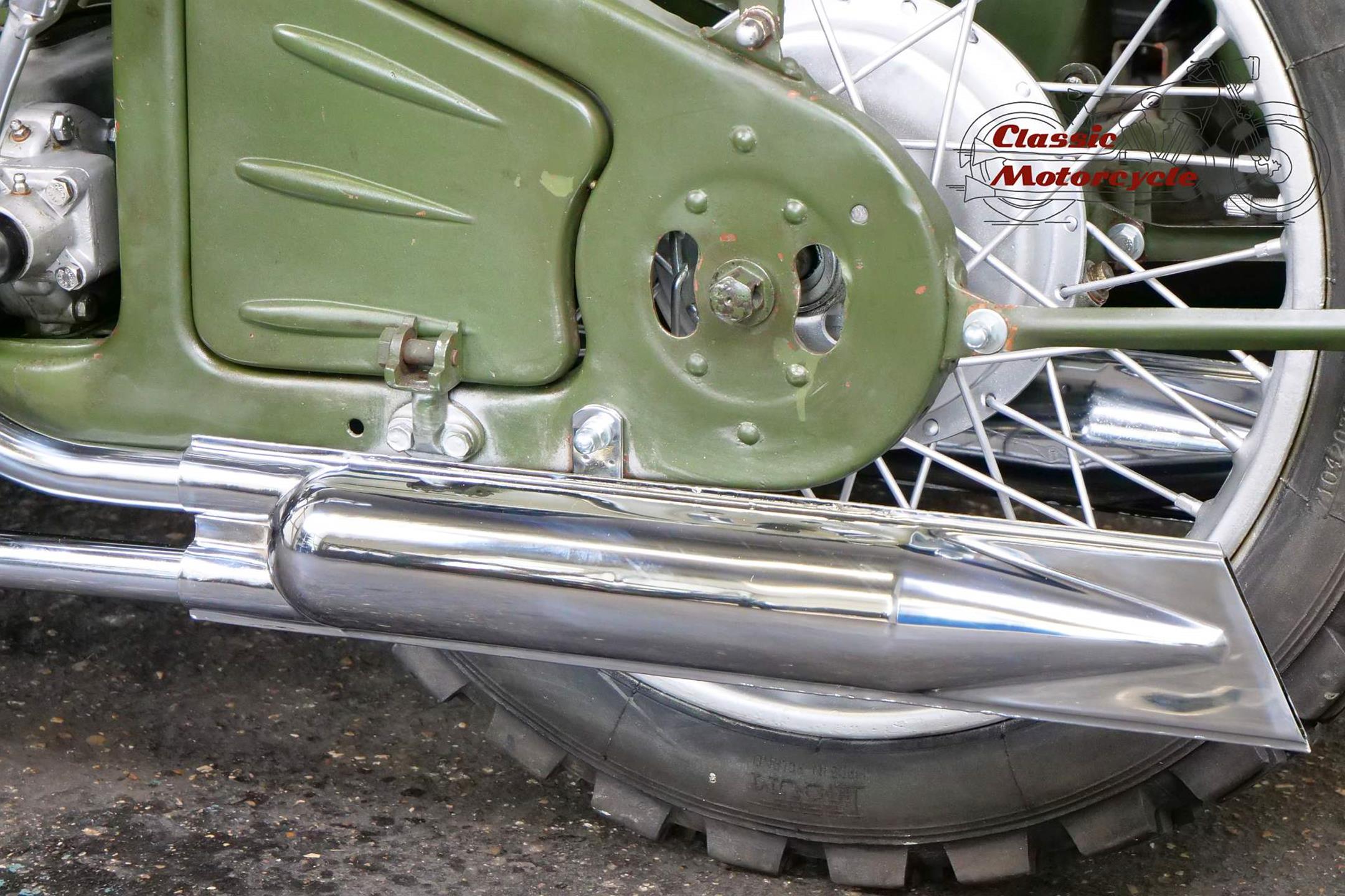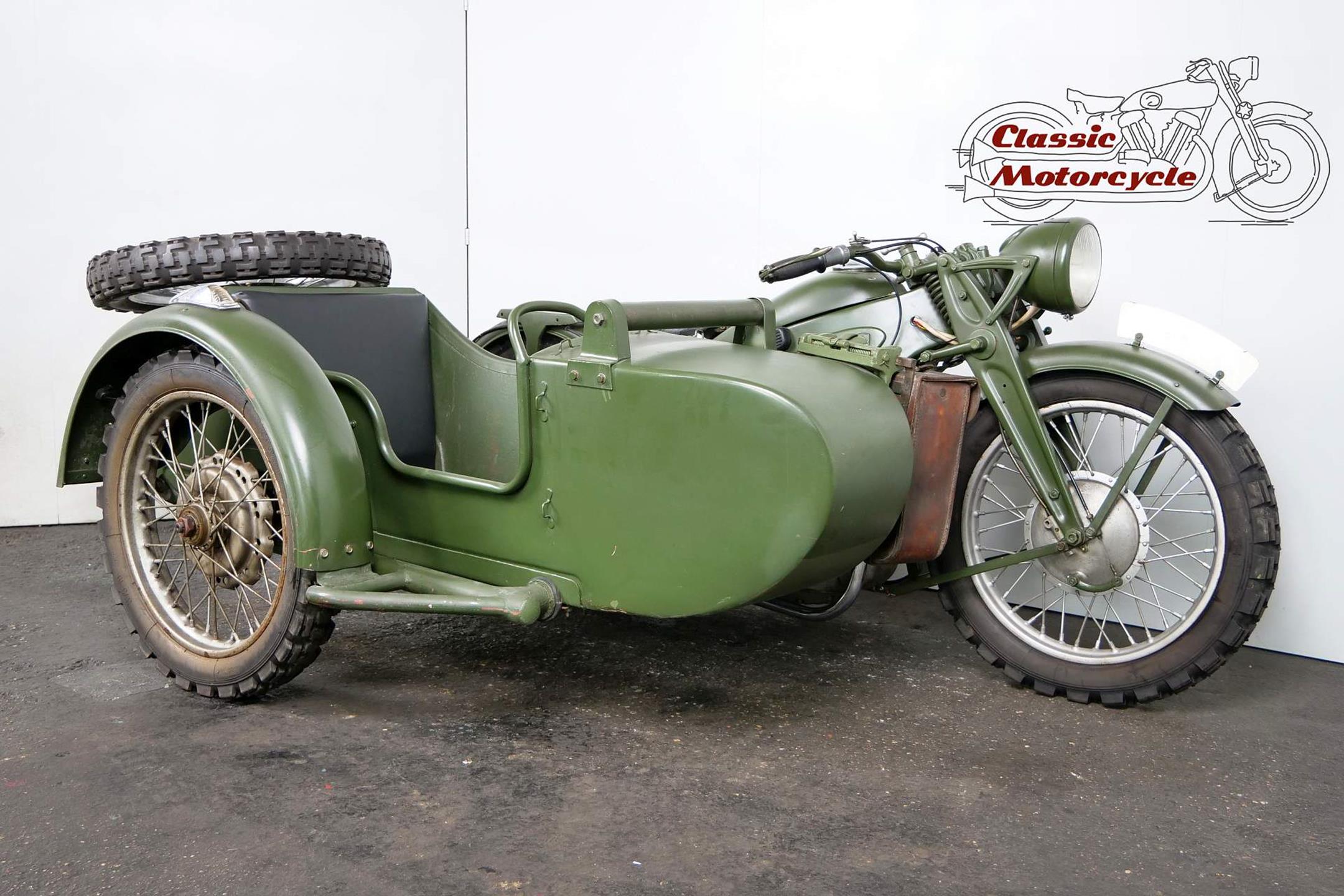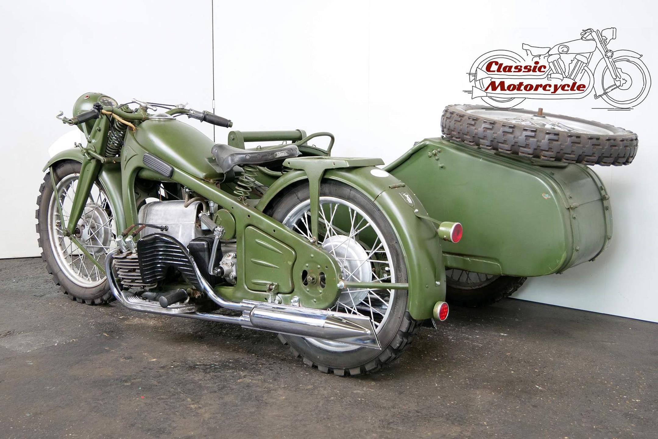 According to the information given to us, it is supposed to be a Wehrmacht team. The machine was part of a large collection in Germany for many years and was restored in the late 1980s. The engine runs round, nice and powerful. The Veigel speedometer works fine. The electrics work and the alternator charges. The bike is ready to ride but not perfect. The vehicle is delivered with complete Austrian papers. The K800 is a powerful German motorcycle and is further enhanced with its 4-cylinder sound.