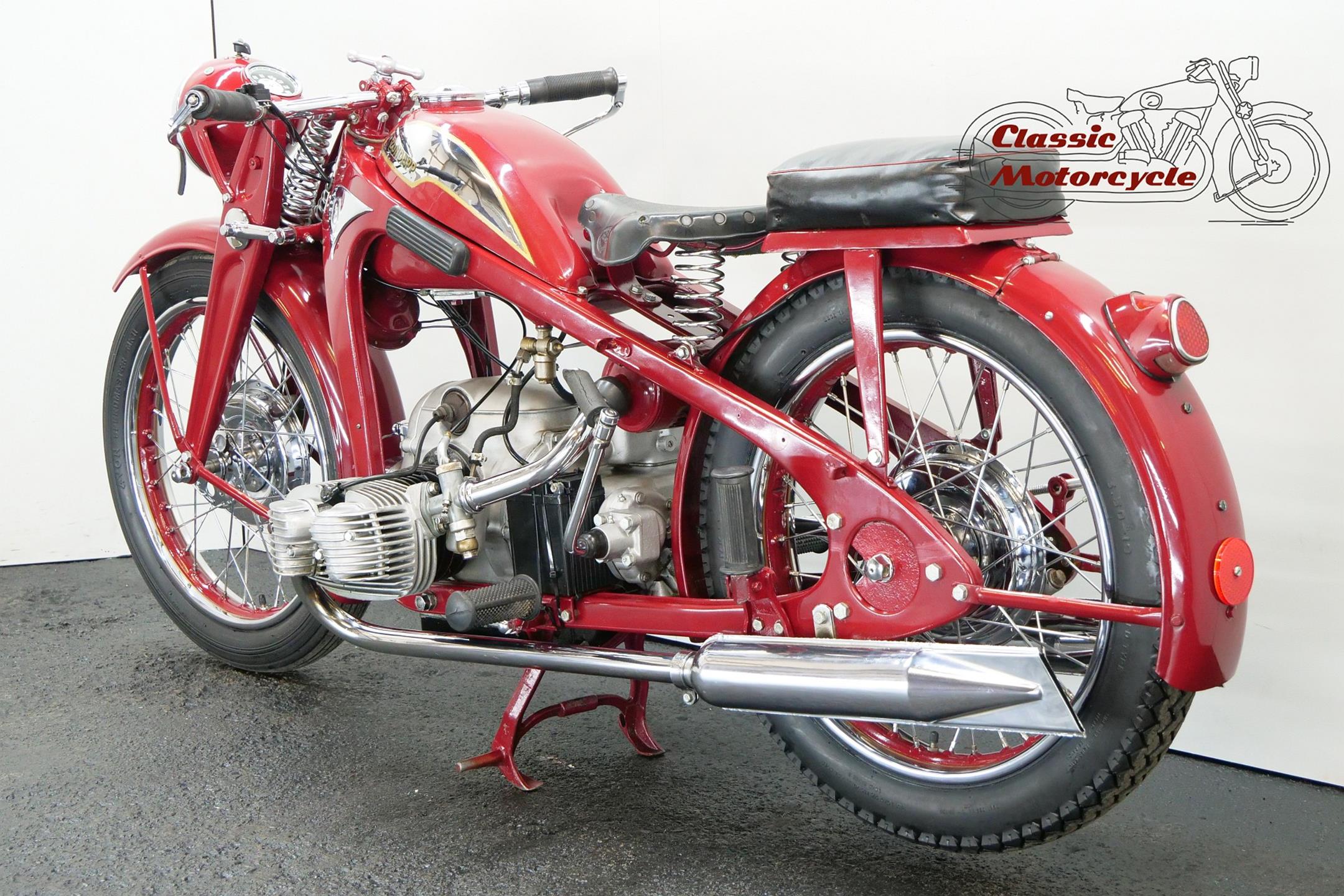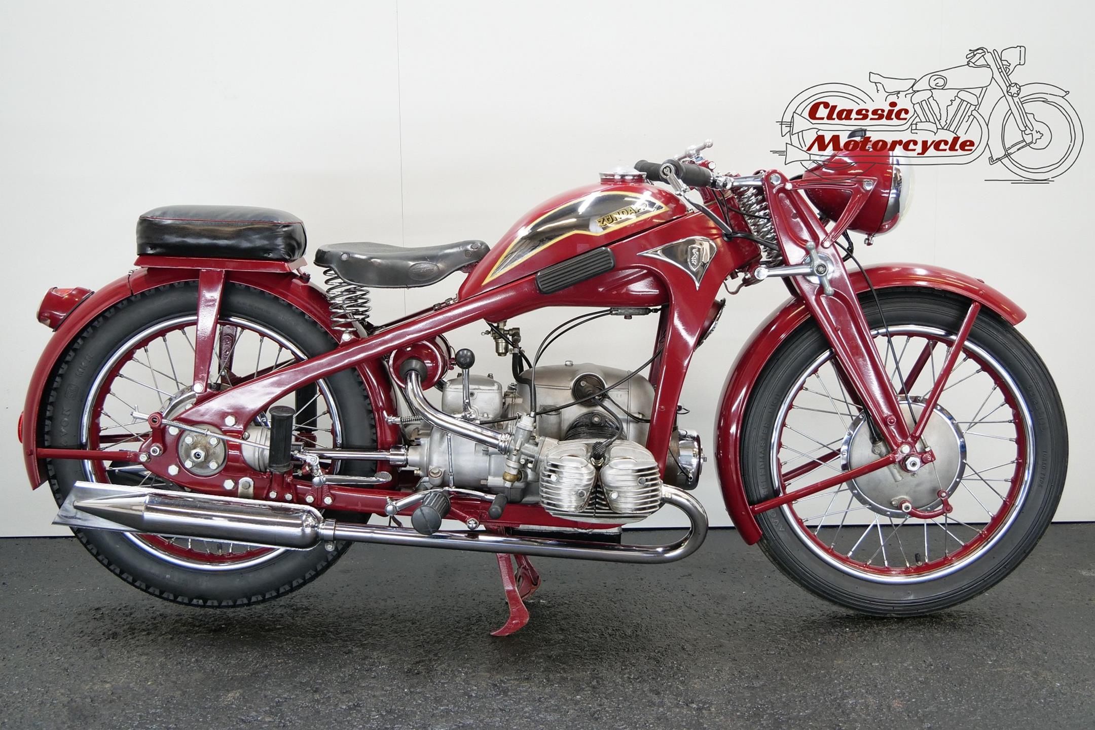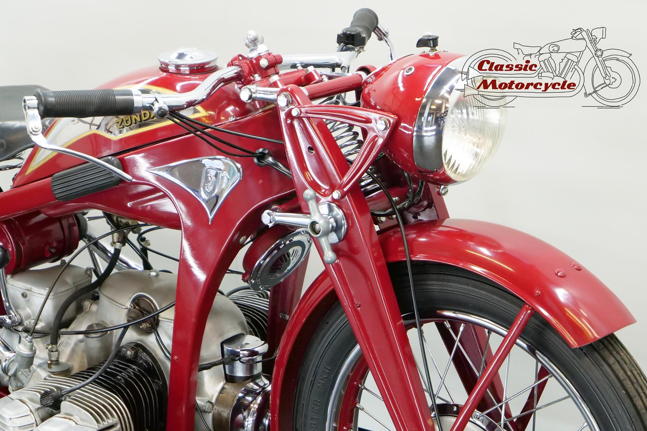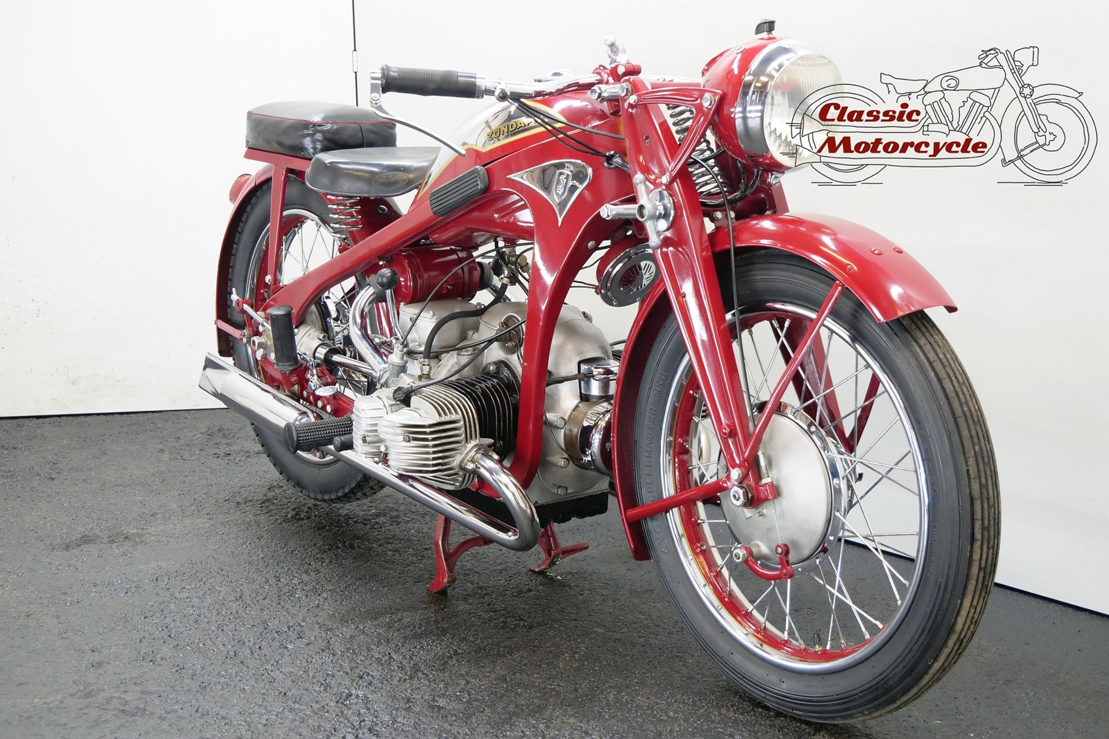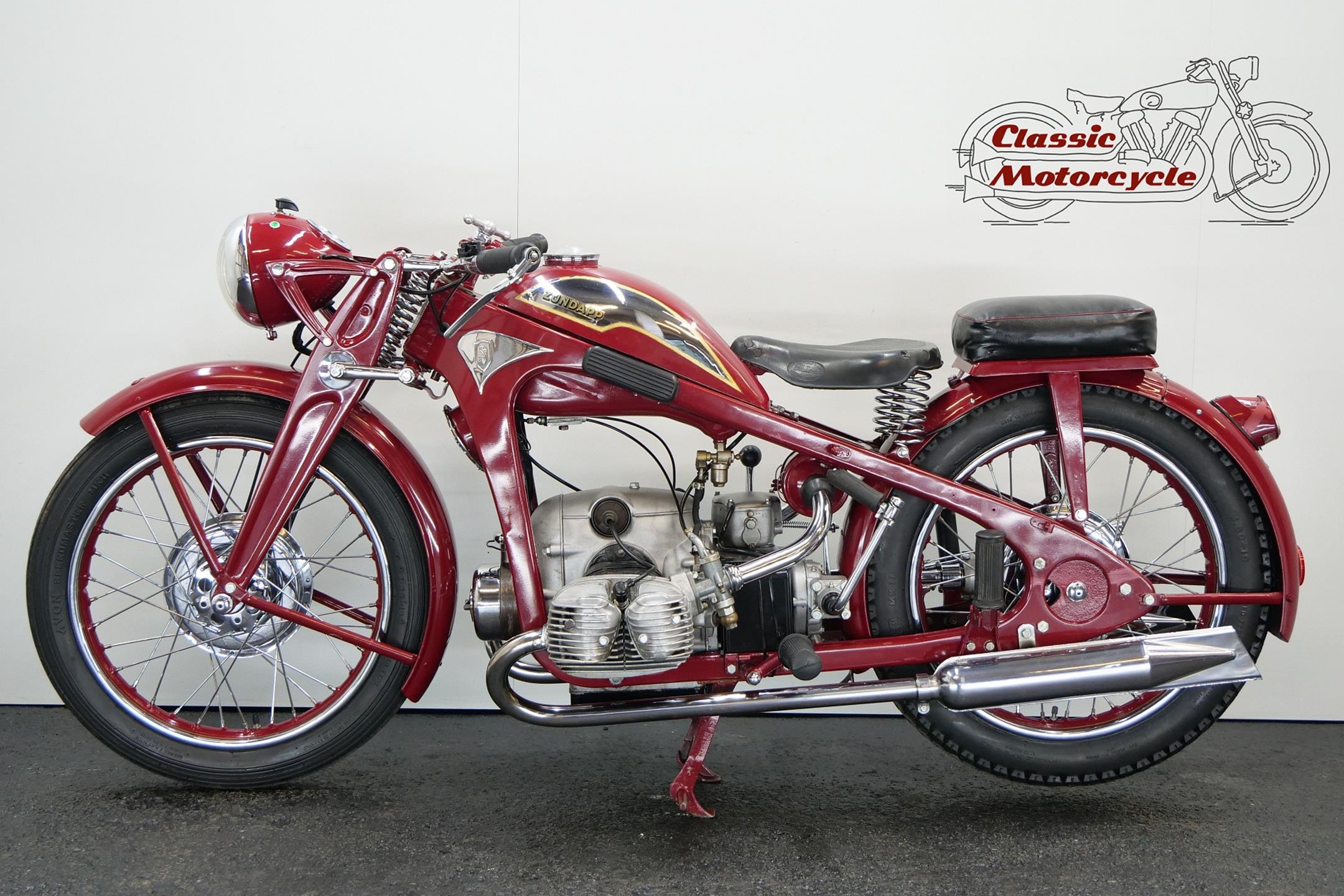 Founded at the height of WWI to manufacture armaments, Zündapp found a new role post-war as a producer of motorcycles under the direction of new owner, Dr Fritz Neumeyer, building its first machine, a Levis-powered two-stroke, in 1921. The firm began making its own engines in 1924, selling more than 10,000 machines that year, and in 1933 introduced the first of the four-stroke flat twins that it is best remembered for. The initial 398cc and 496cc sidevalve models were followed in 1936 by the overhead-valve KS 500 which, like its predecessors, employed designer Richard Küchen’s unconventional all-chain four-speed ‘gearbox’ and shaft final drive. Common to the larger models and eminently suited to withstanding the stresses and strains imposed by travel on unmade roads, the robust frame and girder forks were made of pressed steel, an advanced feature at the time. The KKS 500 was the sport version of the KS 500. The KKS was lighter and gets more top speed than the KS 500. Many private racing enthusiasts used the KSS500.