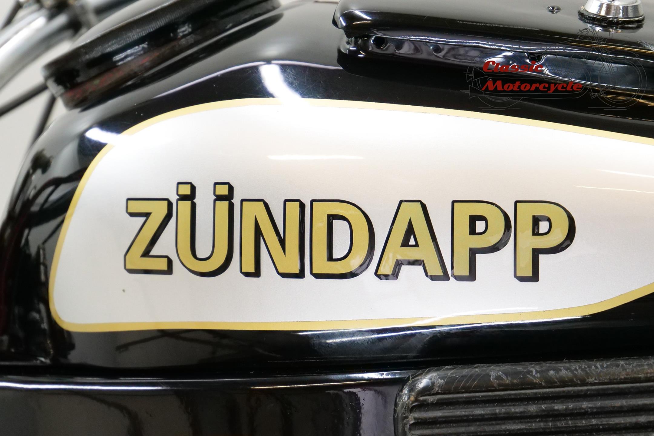 Founded at the height of WWI to manufacture armaments, Zündapp found a new role post-war as a producer of motorcycles under the direction of new owner, Dr Fritz Neumeyer, building its first machine, a Levis-powered two-stroke, in 1921. The firm began making its own engines in 1924, selling more than 10,000 machines that year, and at the Berlin Motor Show in 1933 introduced the first of the horizontally opposed, four-stroke twins that it is best remembered for. These formed part of an extensive and diverse range of models, all but the smallest two-stroke being designated by the letter 'K' (for kardan, meaning 'shaft'). Among the models premiered were the K400 and K500 sidevalve twins, both of which employed designer Richard Küchen's unconventional all-chain four-speed 'gearbox' and, as the designation suggests, shaft final drive. Introduced at the same time was another Küchen design: a horizontally opposed four made in 598cc (K600) and 798cc (K800) capacities. Common to all the larger models and eminently suited to withstanding the stresses and strains imposed by travel on unmade roads, the robust frame and girder forks were made of pressed steel, an advanced feature at the time. The new Zündapp range was an enormous success, and in September 1933 the firm produced its 100,000th machine, quite an achievement after little more than a decade as a motorcycle manufacturer. Immediately prior to the outbreak of war in September 1939, Zündapp introduced an overhead-valve twin, the KS600. The latter's 597cc engine produced 28ps, and like the rest of the larger Zündapps the KS600 featured the chain-drive 'gearbox', shaft drive, and the pressed steel frame and forks.