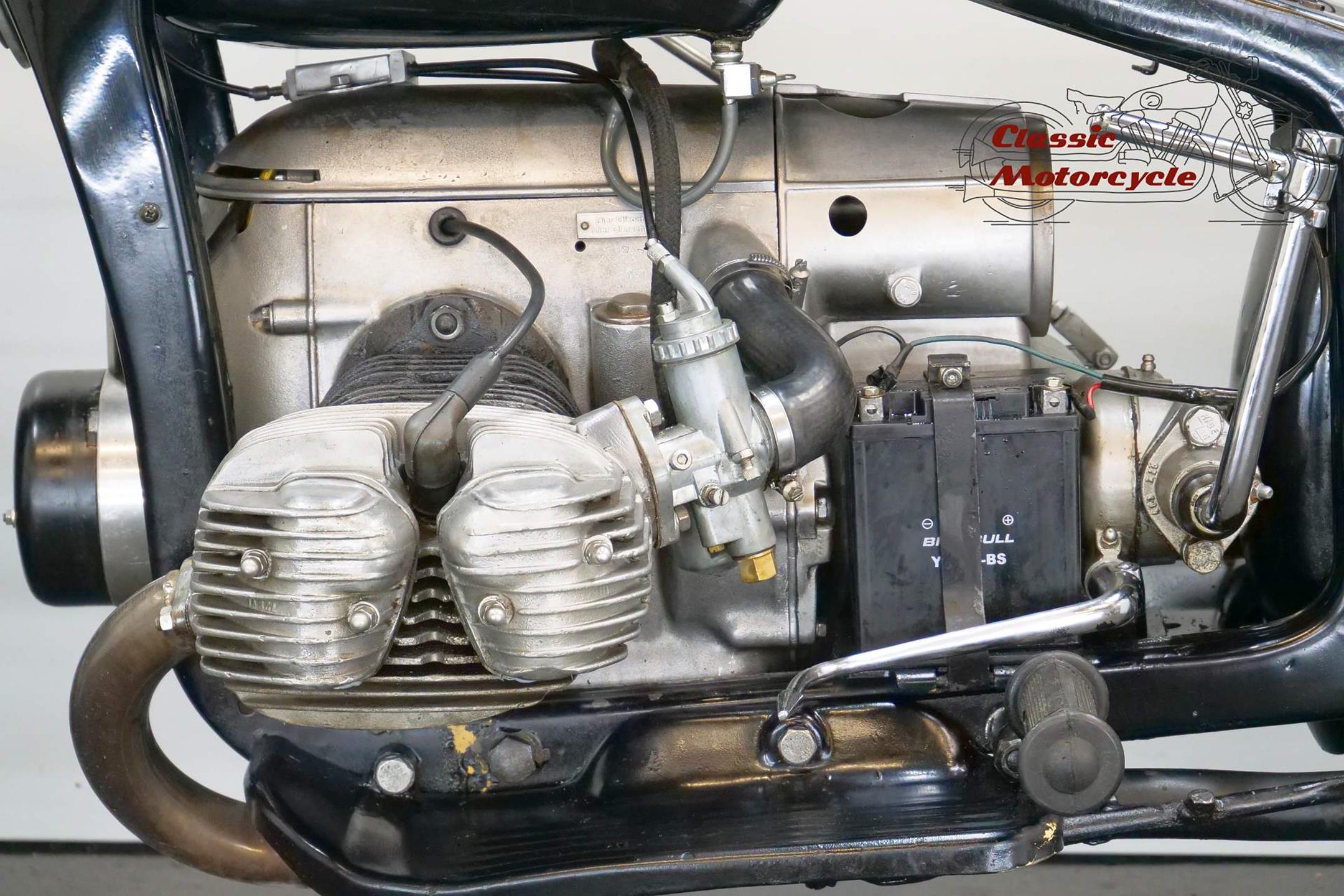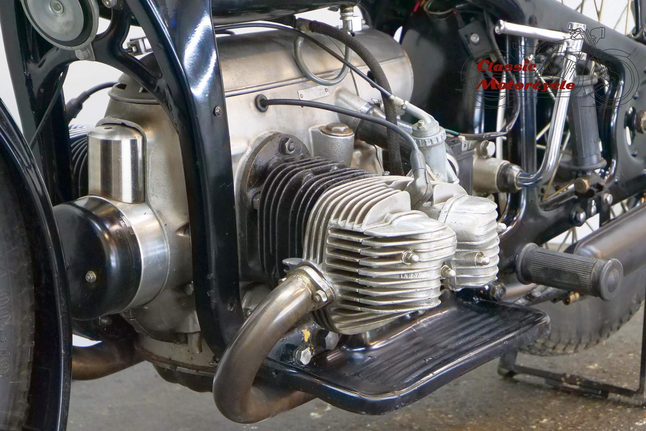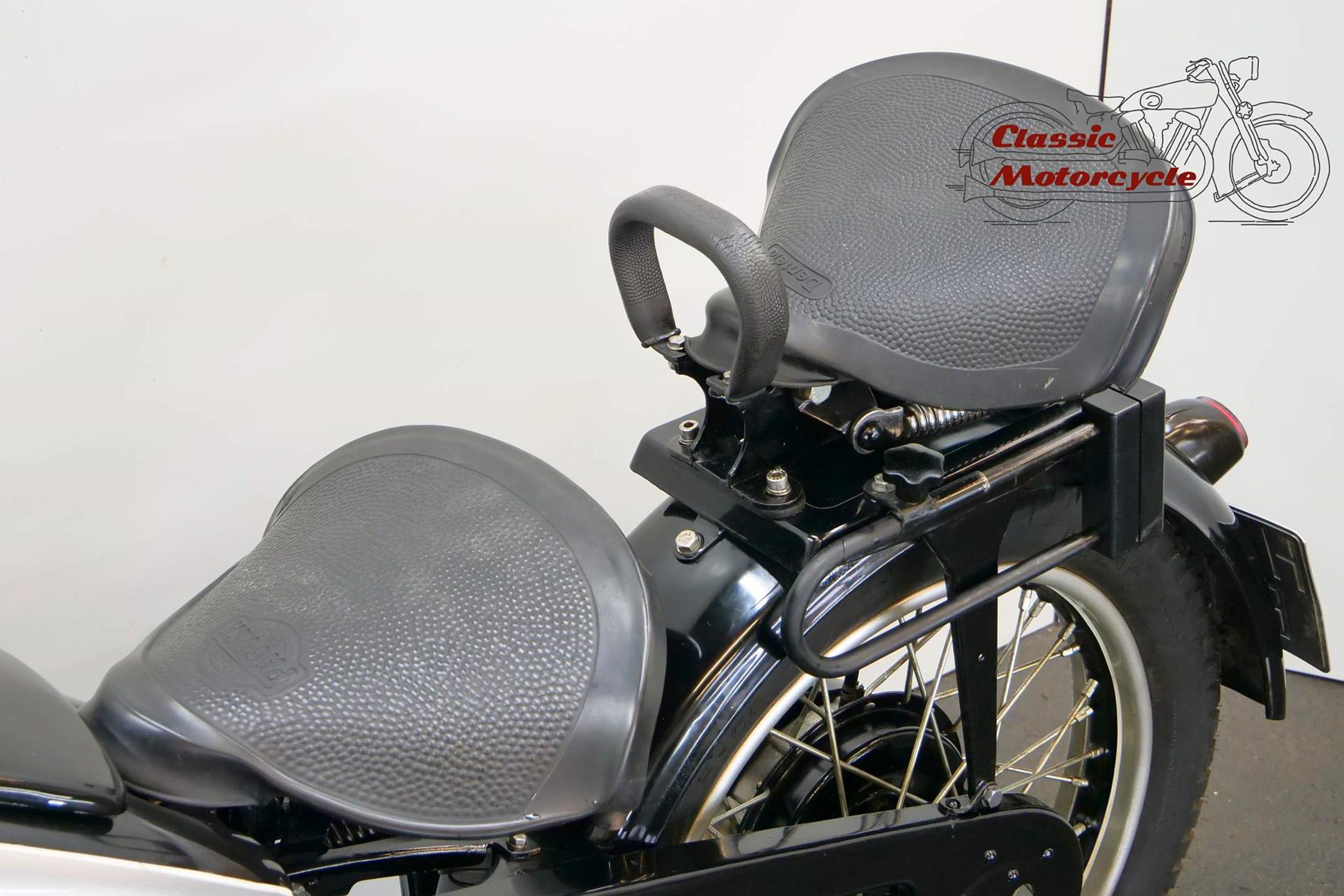 The Zündapp comes from a long-term collector's hand and has complete papers from Spain. The motorcycle is in running condition. Engine and frame number matching, based on the numbers the Zündapp is a military machine and was delivered to the German Wehrmacht. A piece of war history is included. Currently 2 carburetors are fitted, the motorcycle has better performance. The original carburetor and the intake manifolds are handed over with the motorcycle.
