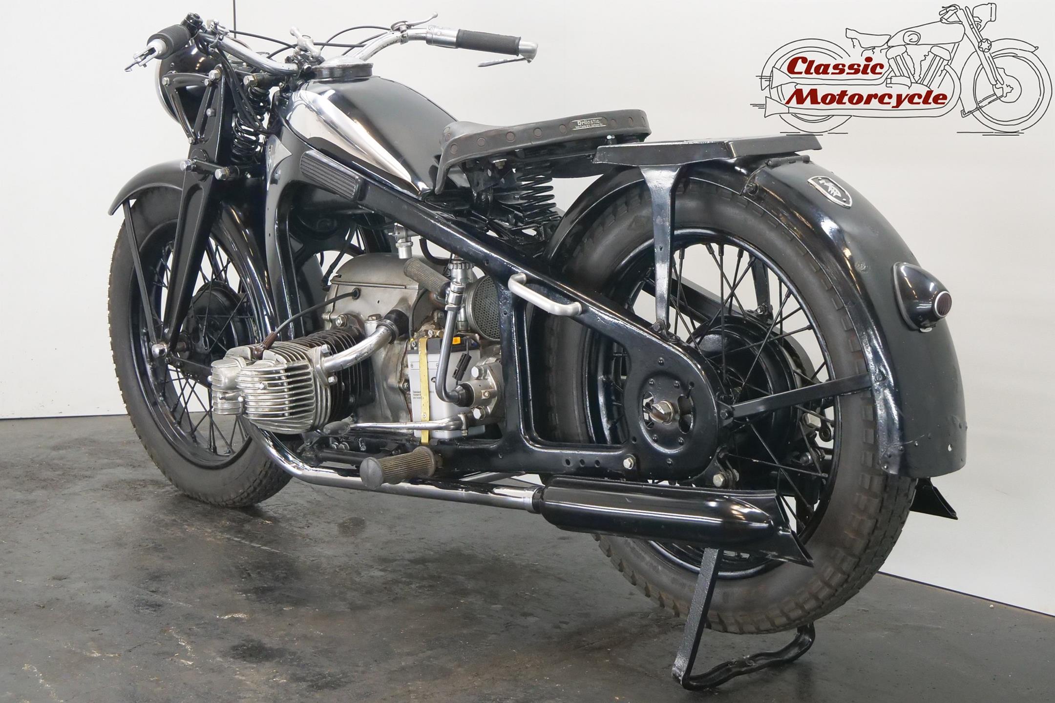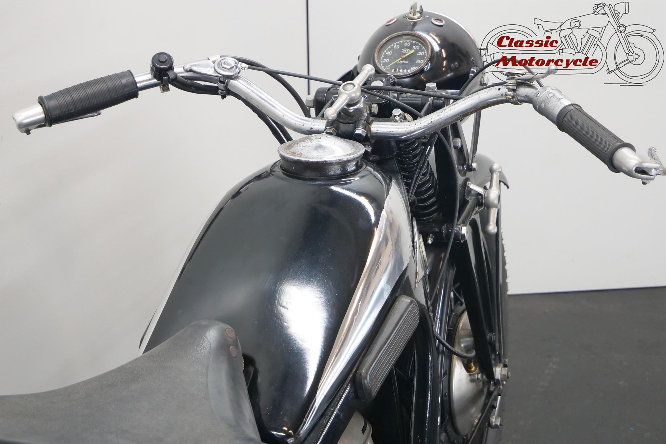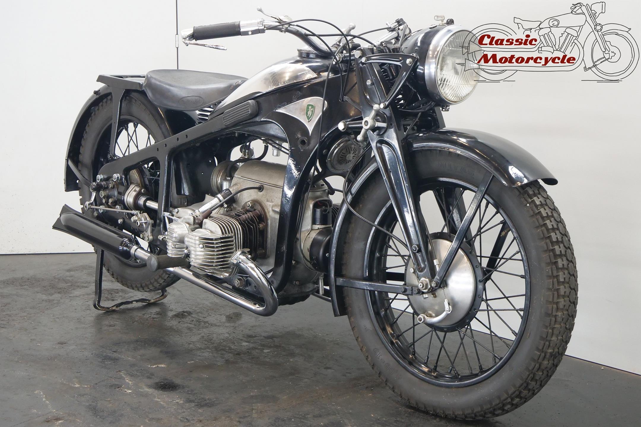 She needs some electrical attention and is equipped with a Bing carburetor and a new exhaust system. This sturdy 597cc transerve twin bike runs well.