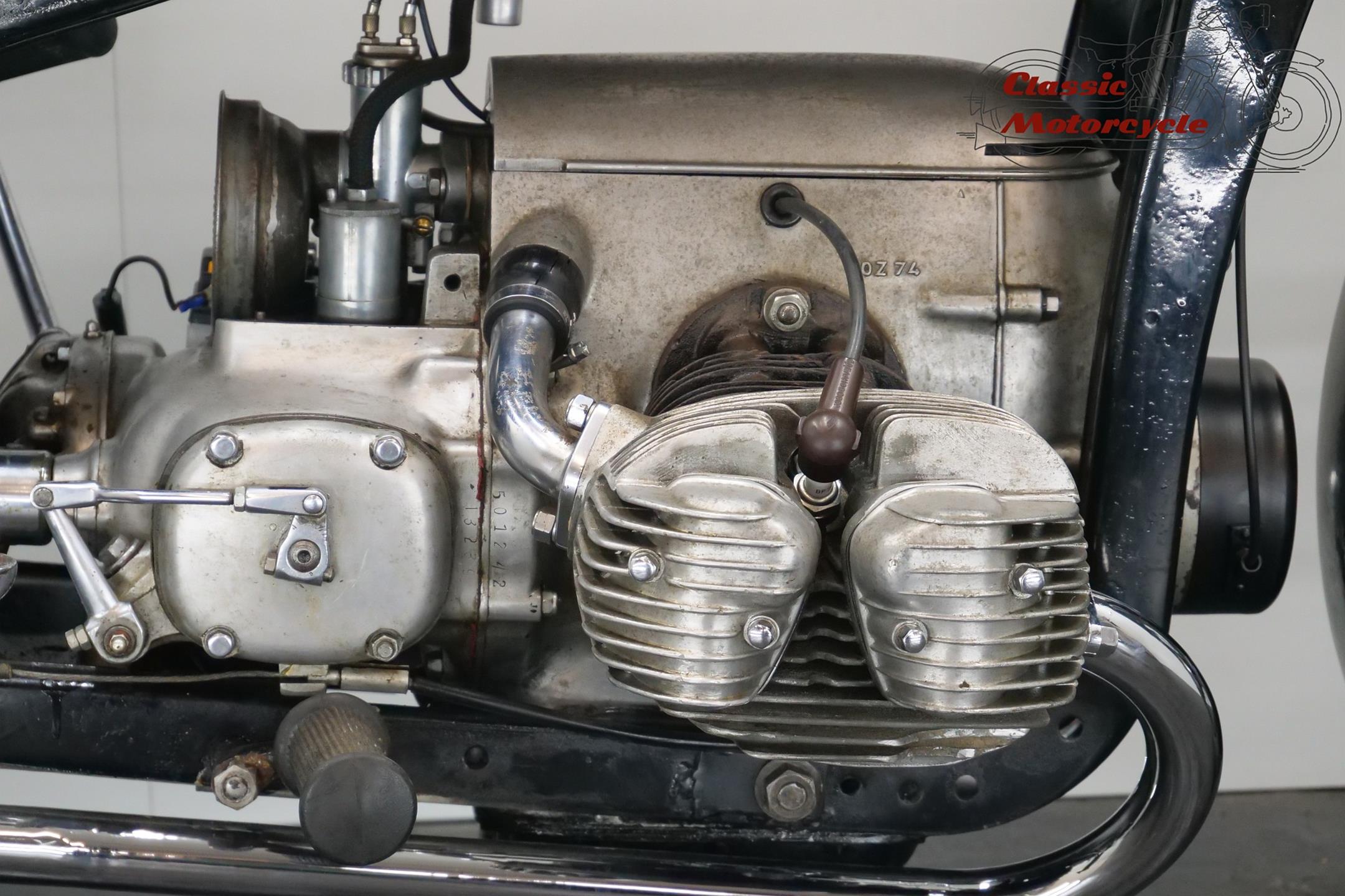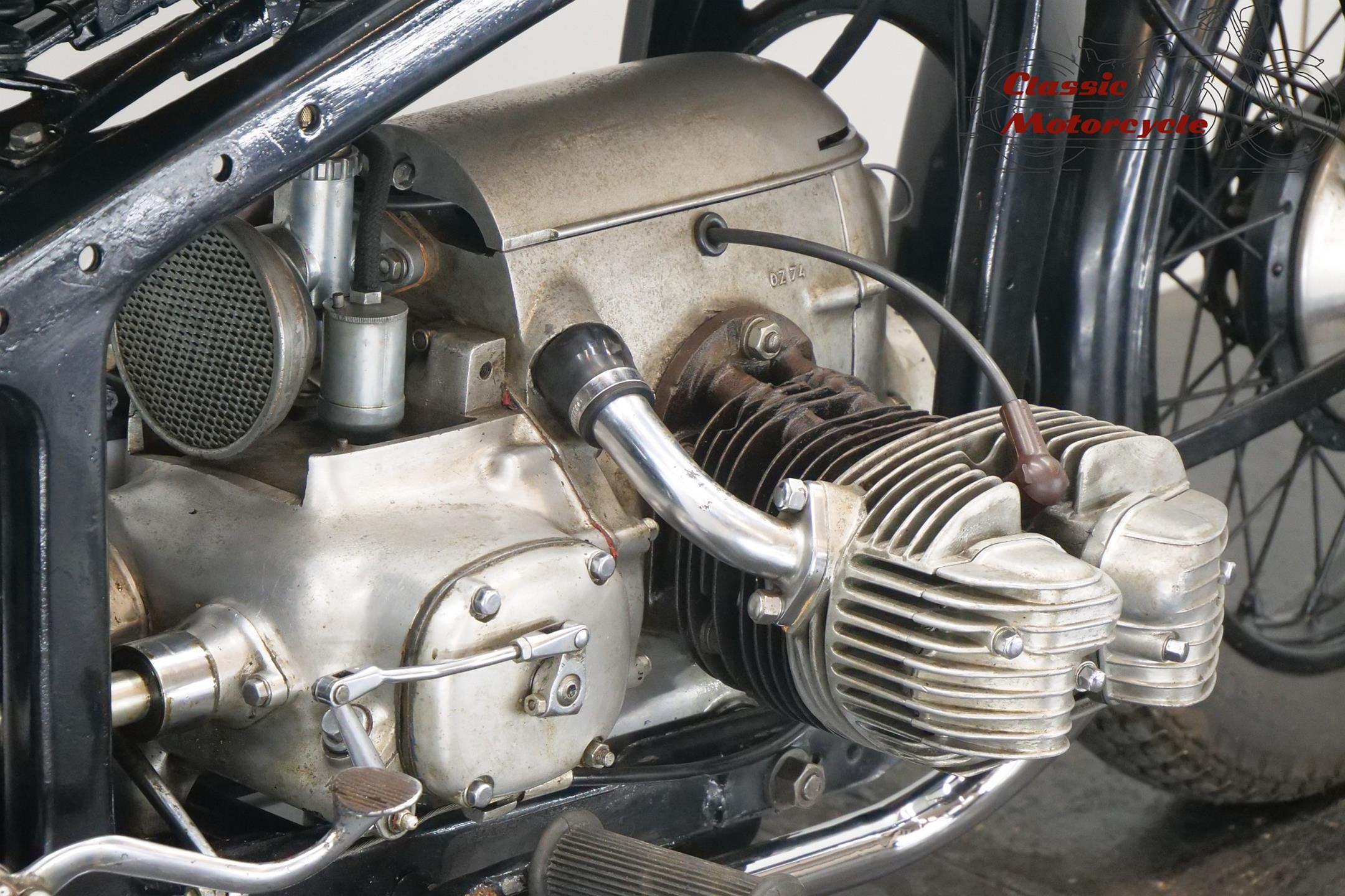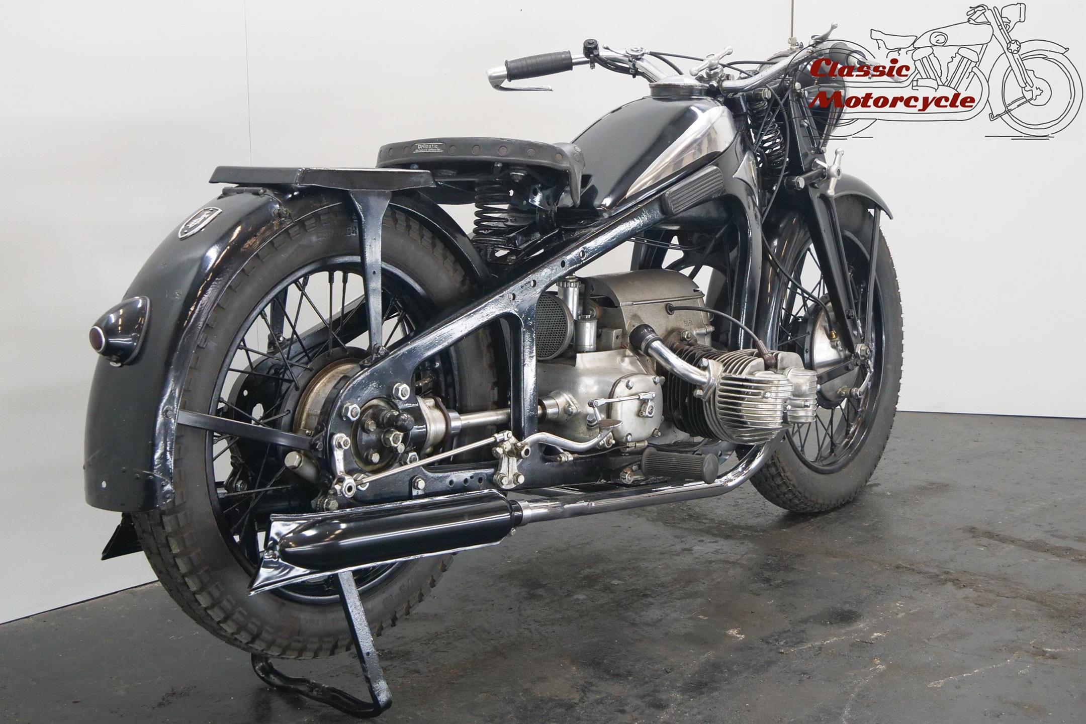 She needs some electrical attention and is equipped with a Bing carburetor and a new exhaust system. This sturdy 597cc transerve twin bike runs well.