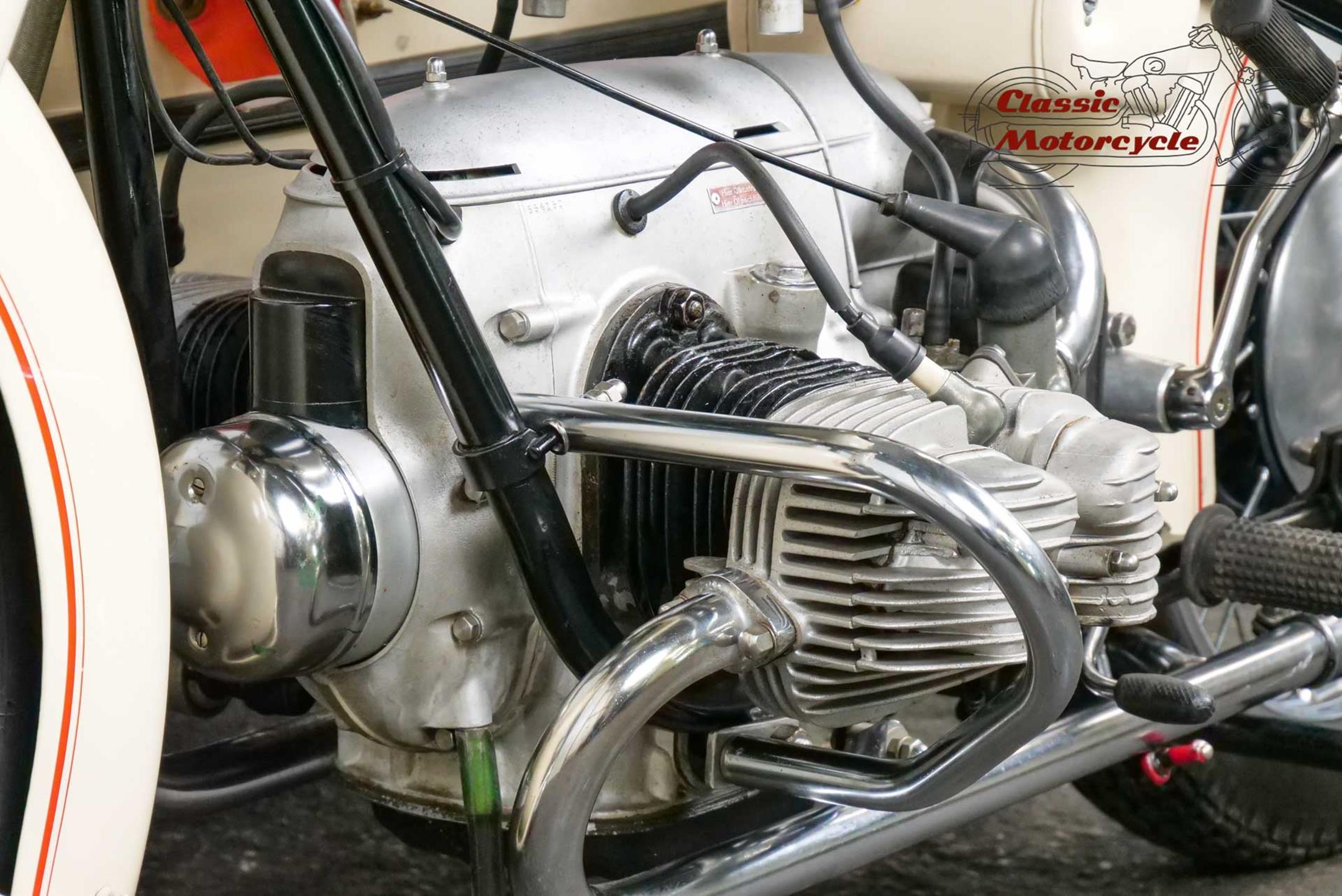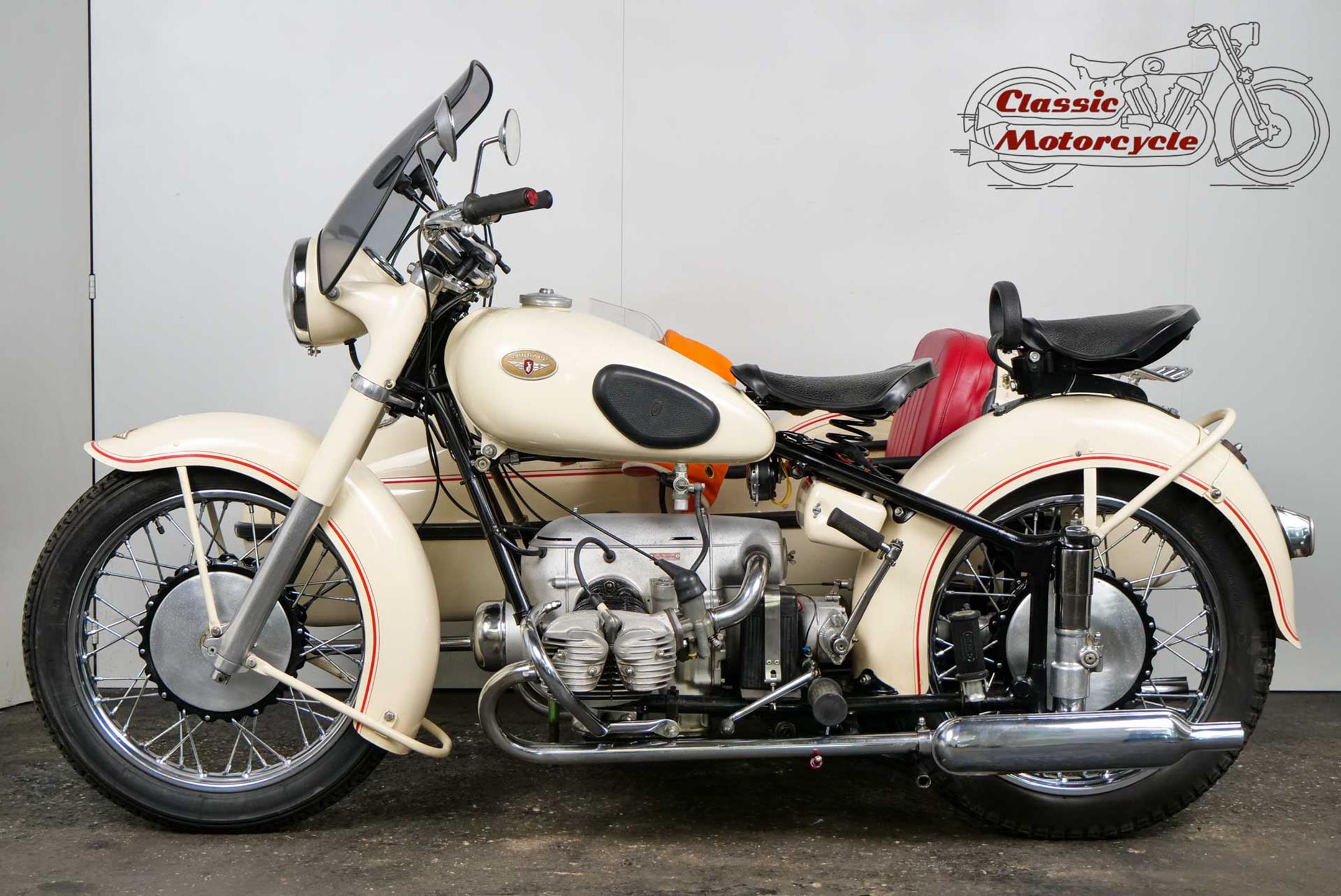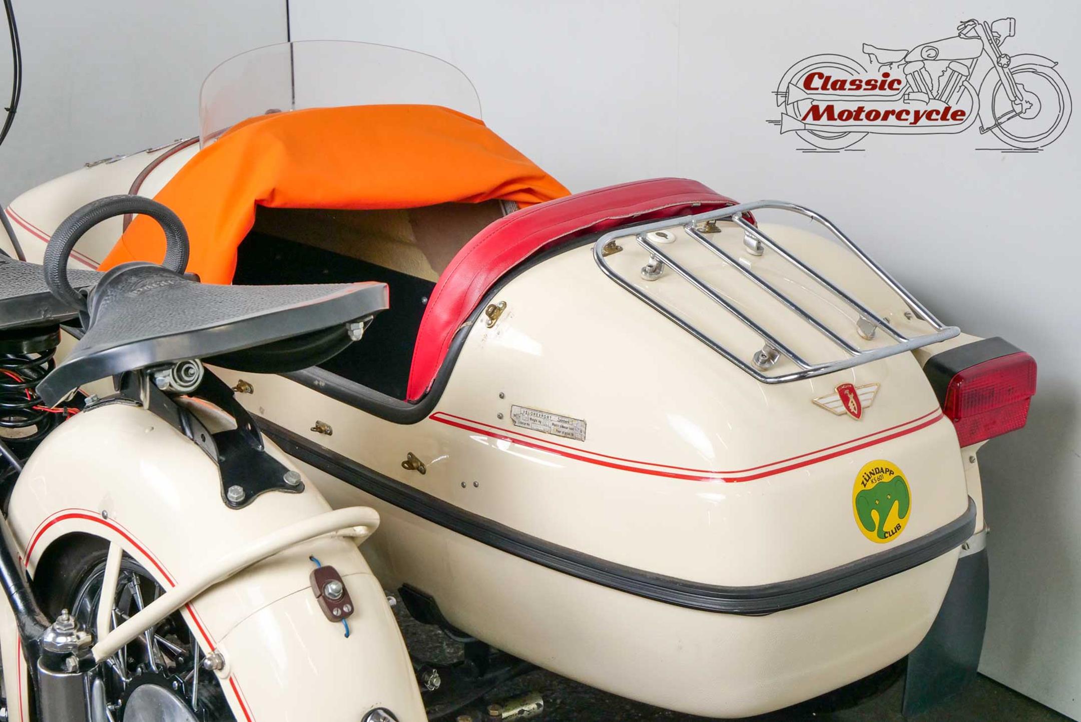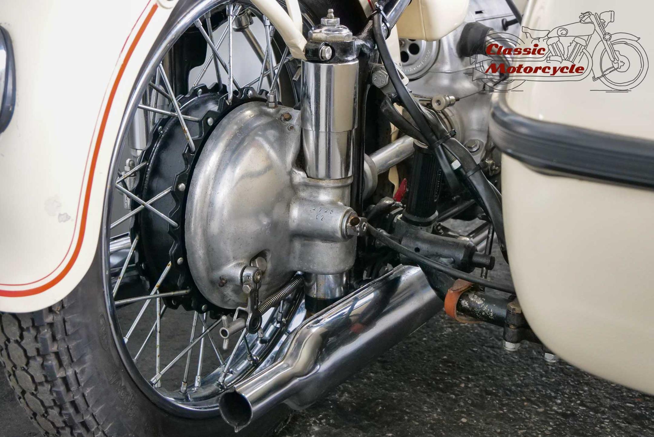 The Zündapp KS601 Sport is the successor of the proven KS600. The engine produces 32ps and is very well suited for sidecar operation. The machine was restored a few years ago and was upgraded with a Velorex sidecar model 562 in the 1990s. The original type plate matches the frame-, engine- and numbers on both cylinders. The machine is fully road ready and has papers from Germany.