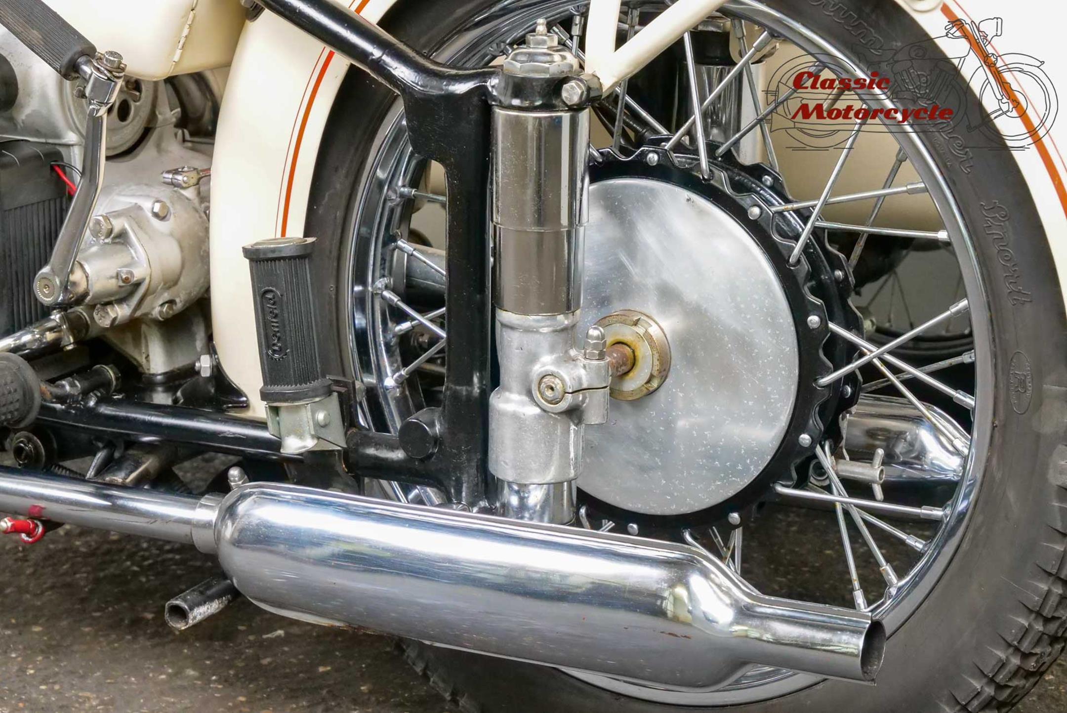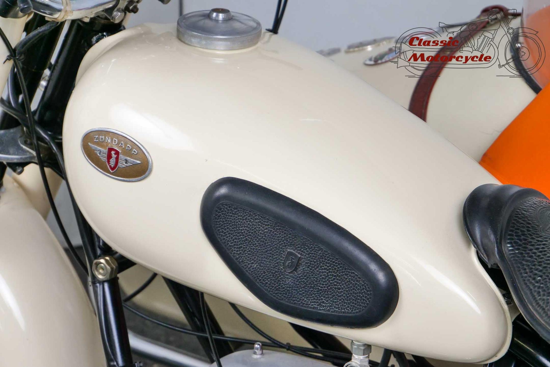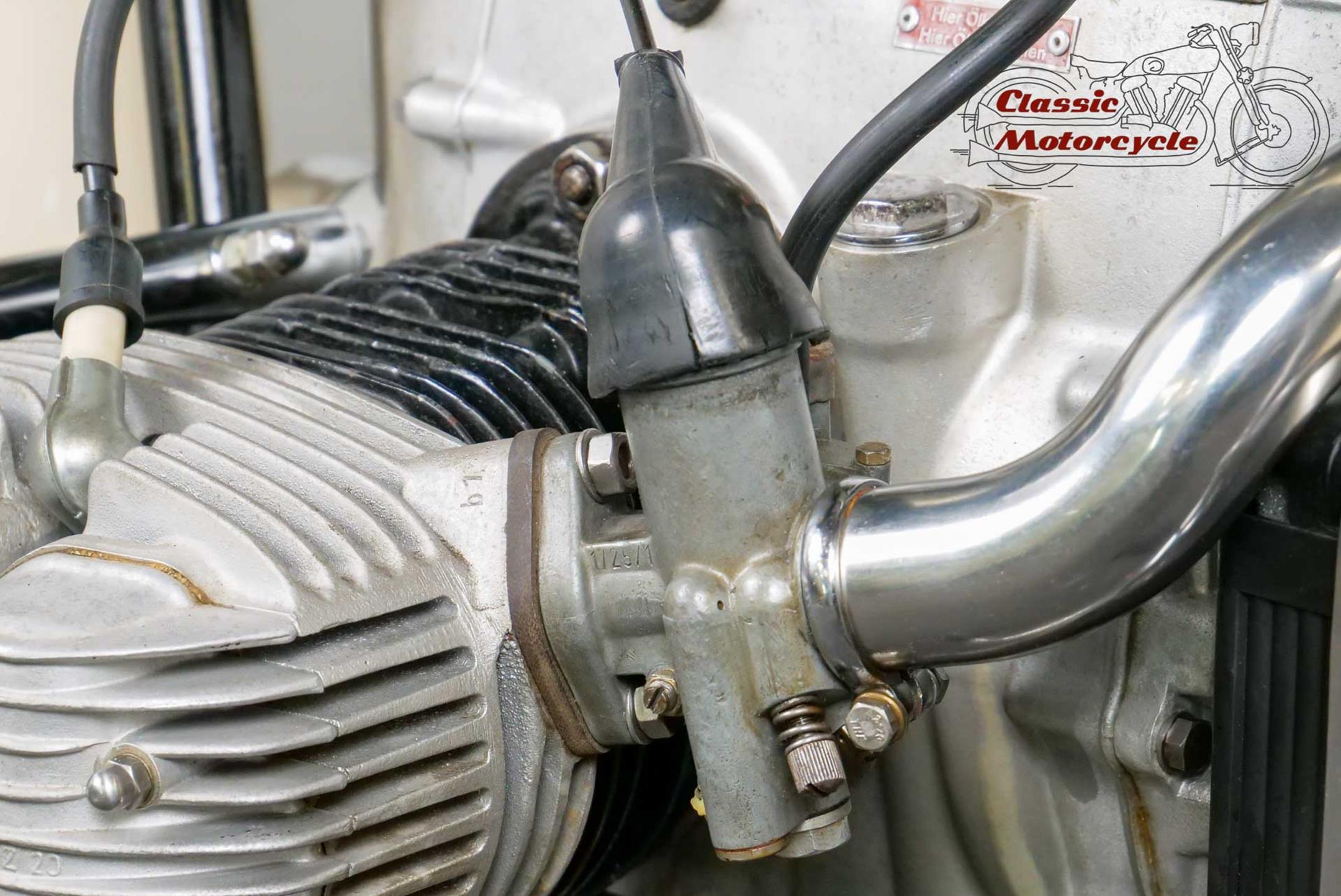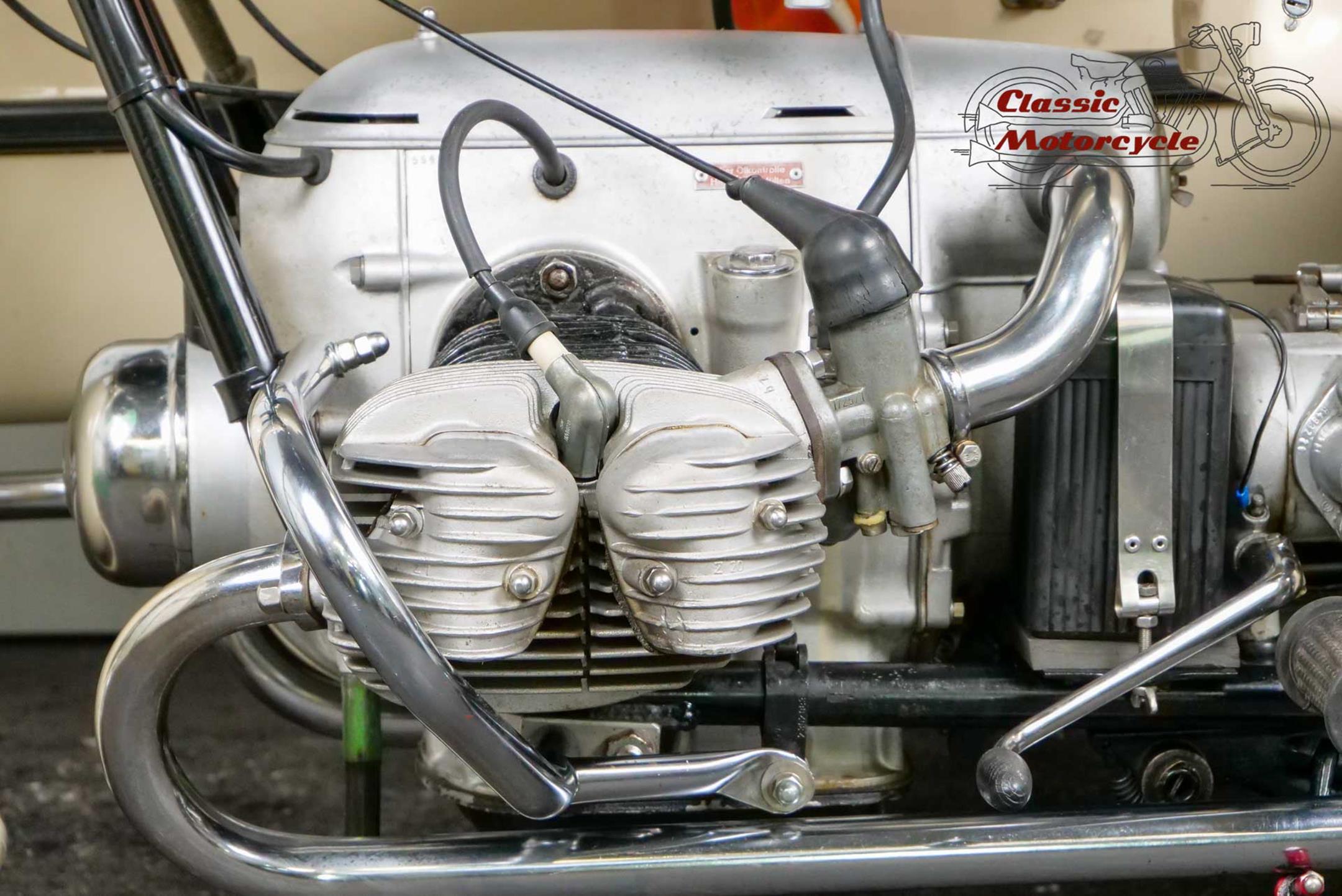 The Zündapp KS601 Sport is the successor of the proven KS600. The engine produces 32ps and is very well suited for sidecar operation. The machine was restored a few years ago and was upgraded with a Velorex sidecar model 562 in the 1990s. The original type plate matches the frame-, engine- and numbers on both cylinders. The machine is fully road ready and has papers from Germany.